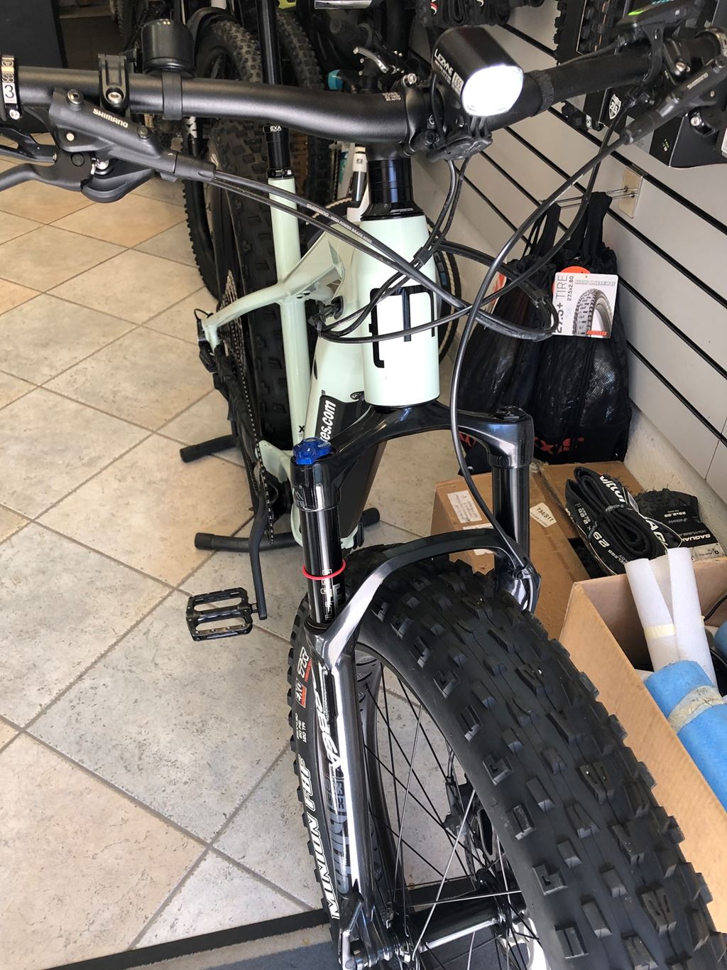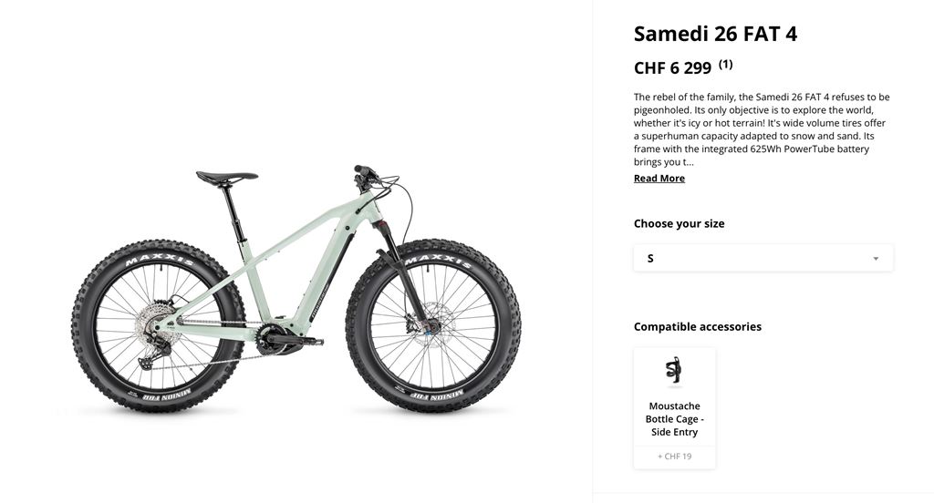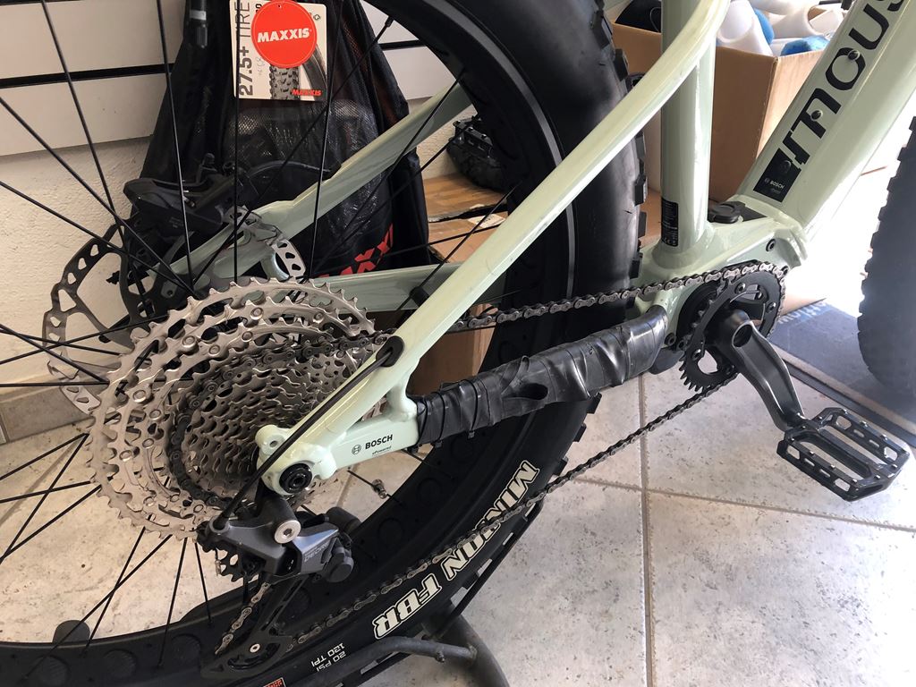 - 2024 Moustache Samedi 26 FAT 4 - E-BIKE Testrad, Showroom eFatbike. Wie neu in sehr gutem Zustand, keine Kratzer und Schäden. Nur im Winter benutzt, daher sind auch die Reifen wie neu. Total 804 km Grösse LARGE Neupreis CHF 6’299.- Inklusive Lezyne Frontlicht. Frame: Fat 4, 6061 T4-T6 Alloy, Variable Thickness Hydroformed Tubes, Tapered Headtube 11/8-11/2, Bosch Powertube Battery Integration (Horizontal), Compatible With 26 X 4.8 Tires, 12X197Mm Rear Hub Fork: Rockshox, Bluto, External Rebound Control, Motion Control Low Speed Compression Adjust Lockout, 100Mm Travel, 15X150Mm Battery Bosch, Powertube 625Wh, Horizontal, Smart System Groupset Rear Derailleur: Shimano, Deore, Rd-M5100-Sgs, 11-Speed Shifters: Shimano, Deore, Sl-M5100-Ir, 11-Speed Cranks: Forged Aluminum, 170Mm, Fat Specific, 30Mm Offset Chainrings: Narrow-Wide, 34 Teeth, Fat Specific Cassette: Shimano, Deore, Cs-M5100, 11-Speed, 11-51T Front Brake: Shimano, Hydraulic Disc, 4 Pistons Rear Brake: Shimano, Hydraulic Disc, 4 Pistons Wheels Rims: Moustache, Alloy 6061E, Welded, 32 Holes, 26, Internal Width 80Mm Tires: Maxxis, Minion Fbf, 26X4.80 Components Handlebar: Moustache, Alloy, 760Mm, 15Mm Rise, 9° Backsweep, 5° Upsweep Stem: Moustache, 3D Forged Aluminum, 60Mm Saddle: Moustache, Ergonomic Seatpost: Exa, 900I, Dropper W/Remote Lever, 31.6Mm