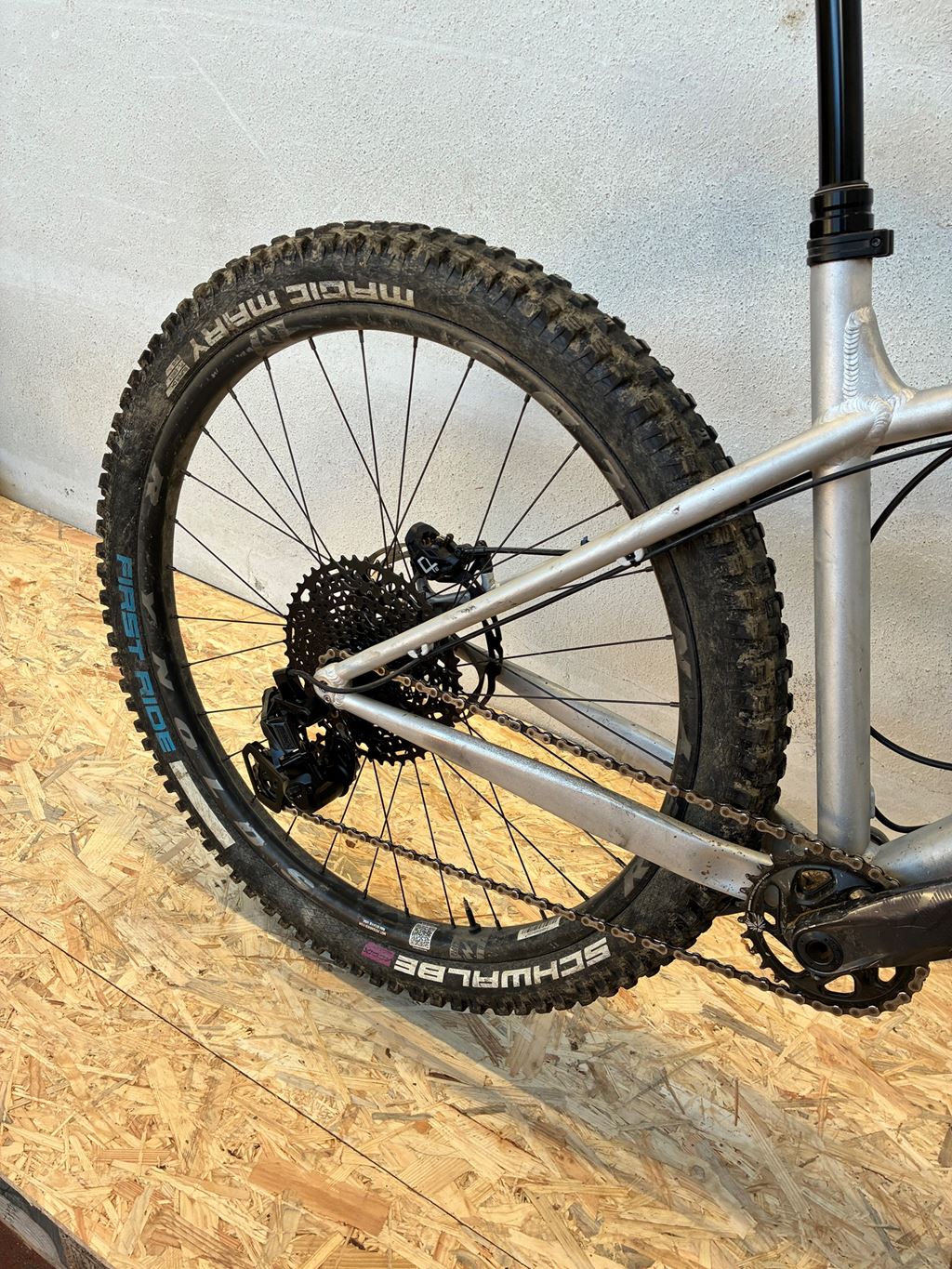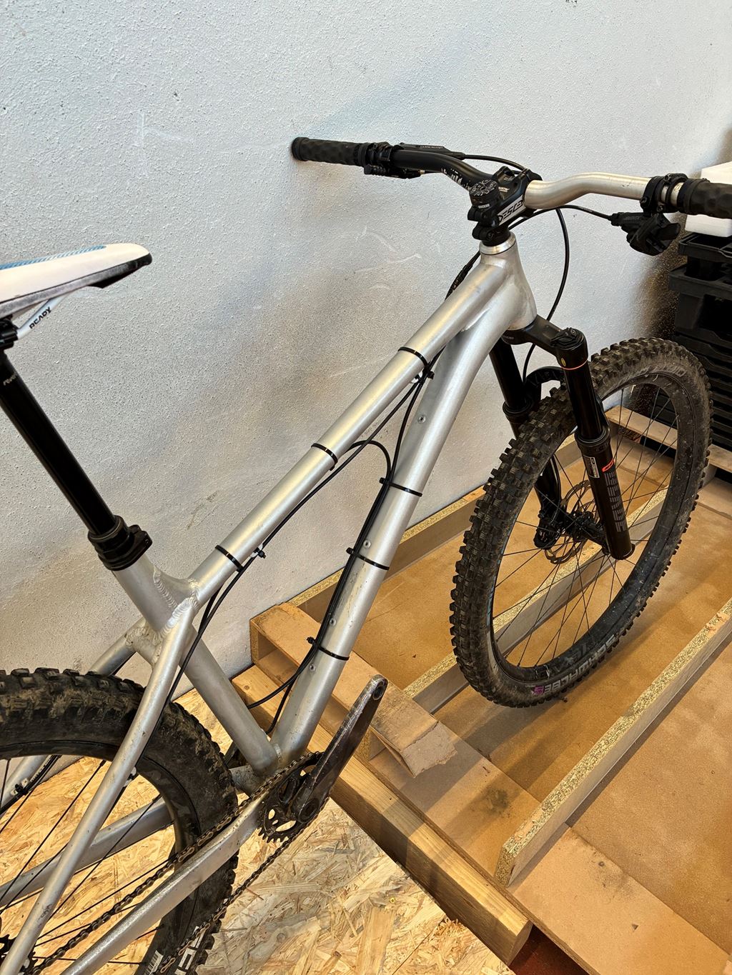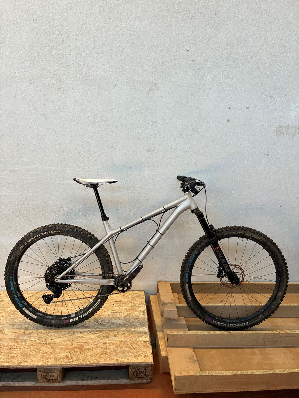 - Verkaufe mein Hardtail, weil ich es kaum bewege. Es funktioniert einwandfrei, hat keine bekannten Risse oder Dellen. - Rahmen: NS Bike Eccentric, Grösse L - Microshift Advent X 10-fach Antrieb (11-48) - ** NEU ** - Hayes Dominion A2 Bremsanlage - Hinten: 27.5'', Schwalbe Magic Mary, Reynolds BL307 - Vorne: 29'', Schwalbe Dirty Dan - Protaper A25 Lenker - RS Reverb Teleskopsattelstütze (175mm Hub), welche einen Service benötigen würde - RST Gabel mit 150mm Ohne Pedale. Preis VHB.