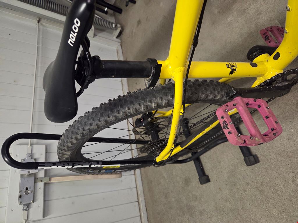 - Naloo Hill Bill gelb Zustand gebraucht Jahrgang 2023 Rahmen: Aluminium 26 Zoll Gewicht 10.9 kg Schaltung: Shimano, Alivio 9-fach Federgabel: RST F1RST Air Bremse: Scheibenbremse, Shimano MT-200 Pedale und Griffe ersetzt siehe Bilder Bike ist einem guten Zustand und wurde als Ersatz- Zweitbike genutzt und dadurch wenig gefahren Bike muss nach Absprach abgeholt werden
