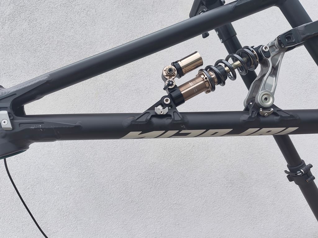 - Salli Zämme Ich verkaufe einen meiner Schätze Mein Nicolai ION G1 Dieser Rahmen ist einer der durchdachtesten den ich jeh in der Hand hatte Alle dropout gewinde im rahmen sind ersetztbar, Geometrie anpassbar. Full 27,5", Mullet oder Full 29" alles möglich. Die Kettenstreben wie die Druckstreben können in der Länge verändert werden. Und ist somit extrem verschieden einsetztbar. Es ist auch möglich diese Komponenten einzeln zu erwerben. Der Spherisch gelagerte Dämpfer ist in speziell für den Rahmen entwickelter EXT storia V.3. mit einer 375lbs feder (75/80Kilo). Der Storia kann mittels flipchip zwischen 162/175mm federweg freigeben. Er ist frisch vom grossen Service und erst nach dem Zerlegen des bikes wieder montiert worden. Mit einem 241x76mm Dämpfer ereicht man c.a198/210mm Federweg. Die Geometrie ist durch Mutatoren anpassbar. Passende EXT Arma auf den Rahmen abgestimmt für einen Aufpreis erhältlich. 390.- (frisch geserviced) Das bike wurde zerlegt alles kontrolliert, geschmiert und geputzt. Alle Lager laufen Sauber, Der steuersatz ist ein ResetRacing Flatsatack A4, mit Gabelkonus für 1⅛ und 1⅕ Gabelschaft. Ein Speziell angefertige untere lagerschale mit Gabelkonus, um die Geometrie für full 27.5" abzufangen und den Stack zu erhalten sind auch dabei. Laufen sauber. Bei bedarf kann gezeigete Sattelstütze dazu erworben werden, für 150.- Die Sattelstütze, ist eine Bikeyoke Revive 2.0 mit 185mm Hub, erhielt ebenfalls Rebuild serivce und seit her nicht benutzt. Es sind Druckstreben Mutatoren: 6.5mm, 12mm, 15mm & Kettenstreben Mutatoren 33 und 41mm vorhanden. Schaltauge ist ein neues montiert, das alte ist in fahrbarem zustand, und kann problemlos gerichtet werden. Ultralight Sattelklemme in Titan ist im preis mit enthalten Ich habe den Rahmen ende 2020 in Auftrag gegeben und im April 2021 erhalten. Er wurde bis ende 2021 aktiv gerfahren und wurde dann mehr oder weniger, an die Wand gehangen (X+1). Am unterrohr sind 2 kleine steinschläge/makken zu sehen, hinten am sitzroher, am Oberrohr hat ein keine kosmetische Mankos. Die Inbusaufnahme Steckachse hat etwas gelitten,(immernoch problemlos zu öffnen). Den bildern zu entnehmen Ich trenne mich nur aus platzgründen von dem Rahmen, da der Fuhrpark langsam über Hand nimmt. Bei fragen gerne melden