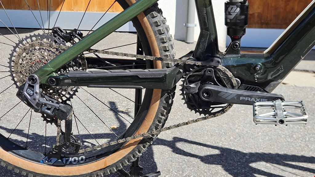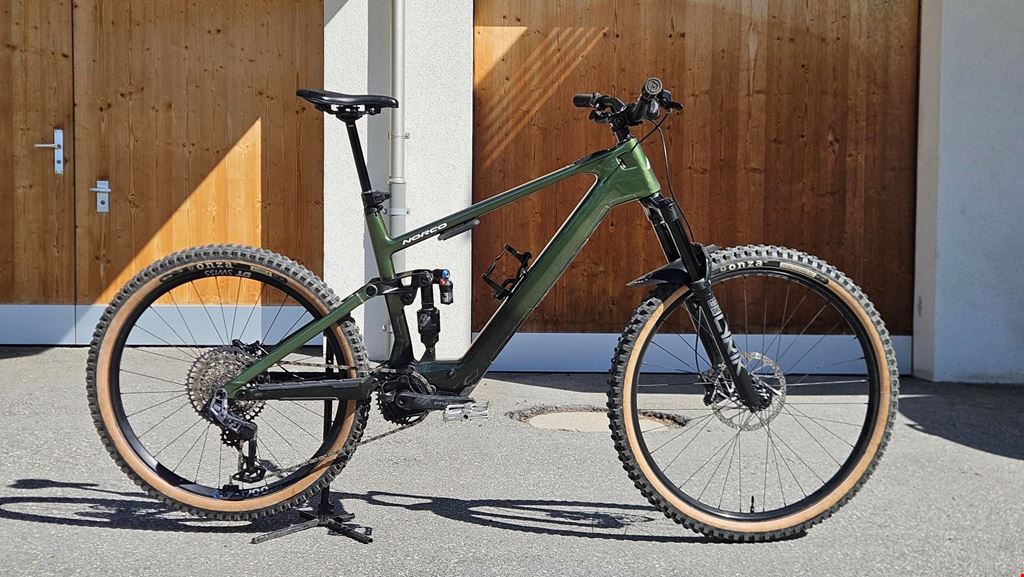 - Neupreis: 6990.- Grösse: XL nur aktuell 550km und 10 abgeschlossene Ladezyklen! Mullet, vorne 29" hinten 27.5" Ich verkaufe mein Norco Fluid VLT C2 2025, seit Augustgefahren. Das Bike kann mit Schläuchen oder Tubeless übernommen werden. Das Bike wurde vor dem ersten Fahren mit Schutzfolie an den meisten Stellen foliert. Es hat nur sehr wenige kleine Steinschläge/leichte Kratzer, keine Sturzschäden oder ähnliches. Verschiedene Teile wurden durch hochwertigere ersetzt, bzw. nun wieder die originalen, nicht benutzten Teile verbaut, siehe Auflistung: Drive Unit: Bosch Performance Line SX mit Bosch 400Wh Batterie Gabel: RockShox Lyrik Select+, 29", 150 mm Travel Dämpfer: Fox FLOAT X2 Performance Elite, 185x55mm Trunnion Schaltung: SRAM GX Eagle AS Transmission Bremsen: TRP Trail Evo mit TRP TR203, 203mm/180mm, 2.3mm Scheiben Lenker: Norco Alulenker 800mm, 25mm Rise Seatpost: TranzX YSI08FL RAD+ Travel Adjust Dropper, 200mm (nicht wie auf Bildern) Sattel: Fizik Ridon (NEU, nicht wie auf Bild) Griffe: WTB Wavelength Lock-On (NEU) Laufräder: Bear Pawls Naben mit WTB KOM Trail Felgen (hintere Felge NEU, WTB KOM Tough) Das Milkit-Tool am Rahmen wird nicht verkauft.