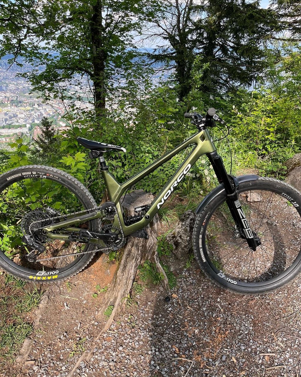 - Ich verkaufe mein geliebtes Norco Range 2022 Carbon Team Edition. Die Farbe ist exklusiv für Norco Factory unterstütze Fahrer -> laut Traildevils nur 3 - 6 Stück in Europa vorhanden. Der Rahmen ist in gutem Zustand, da er zu 95 % mit Schutzfolie versehen war (die Folie wurde vor dem Verkauf entfernt). Die restlichen Komponenten weisen normale Gebrauchsspuren auf. Das Bike wird frisch vom Service verkauft :) Bei Fragen oder Interesse an weiteren Bildern könnt ihr mir gerne schreiben. Das Bike ist sofort fahrbereit und kann nach Absprache besichtigt oder getestet werden. Parts welche verbaut wurden: - Rahmen: Norco Range 2022 Carbon Team Edition (Golden Forest Green Custom Farbe) - Dämpfer: RockShox Super Deluxe Ultimate450lbs Feder oder 550lbs - Handlebar: Deity Components Racepoint 35*mm 38mm Rise - Stem: Deity Components Copperhead 0/35mm - Grips: Burgtec The Bartender Pro - Brakes: Magura MT7 - Rotoren: Magura 200mm - Seatpost: Rockshox Reverb AXS 170mm 31.6 incl. 34.9 Adapter - Trigger: Sram GX AXS - Wechsler: Sram GX AXS Eagle 1x12 - Kasette: Sram GX Eagle 52t - Chain: Sram XX1 Black - Sattel: Deity Speedtrap - Sattelklemme: Norco - Steuersatz: BBB - Tretlager: Sram - Reifen Schwalbe Tacky Chan - Insert: Cush Core - Laufradsatz: Dt Swiss EX1700 Felge (hinten Neu)