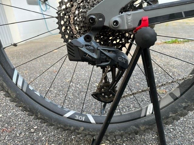 - Carbon Lenker; Shigura Bremsen; Sram GX AXS Wechsler, Fox Kashima Gabel, Dämpfer, Sattelstüze; Schlauchlos mit Insert