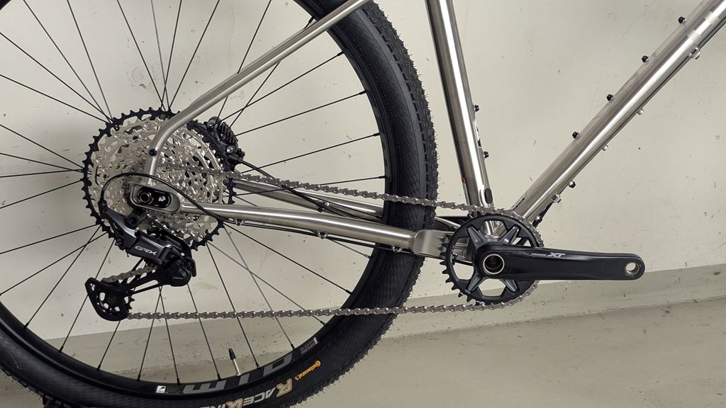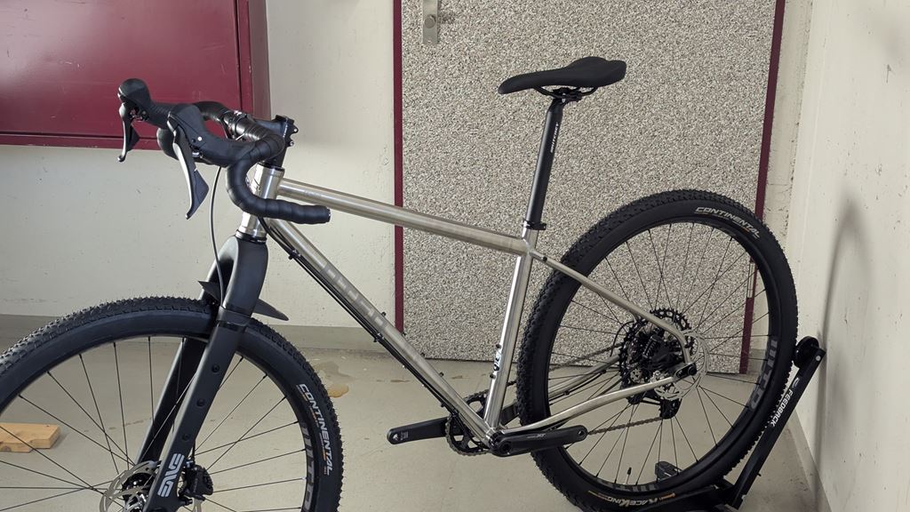 - Sie suchen ein Bike, das keine Grenzen kennt? Wir verkaufen ein fabrikneues Otso Fenrir mit dem legendären Edelstahl-Rahmen. Das Fenrir ist ein wahrer Verwandlungskünstler: Ob als robuster Gravel-Abenteurer mit Dropbar oder als agiles Bikepacking-Rig – der hochwertige Edelstahl-Rahmen bietet eine unvergleichliche Fahrqualität, ist extrem langlebig und optisch ein absolutes Highlight. Dank der variablen Geometrie (Tuning Chip) lässt sich der Charakter des Bikes individuell anpassen. Die Ausstattung im Detail: Rahmen: Otso Fenrir Stainless Steel (Edelstahl), Grösse L Gabel: ENVE Carbon Mountain (leicht, steif und mit vielen Montagepunkten) Schaltung: Shimano GRX 1x12-fach (mechanisch), 10-51 Zähne – enorme Bandbreite für steile Anstiege Bremsen: Shimano RX400 hydraulische Scheibenbremsen (180/160mm) Cockpit: Ritchey Venturemax Lenker (42cm) & Ritchey Comp Vorbau (70mm) Laufräder: Robuste WTB i30 Felgen mit Super Cycle Naben Bereifung: Continental RaceKing 29x2.2 – rollt schnell und bietet massig Komfort Sattel/Stütze: WTB Volt Sattel & Ritchey Comp Stütze Ihre Vorteile: Zustand: Fabrikneues Ausstellungsstück. Garantie: Volle Herstellergarantie ab Kaufdatum. Service: Professionell aufgebaut und sofort einsatzbereit. Besichtigung: Das Bike kann bei uns im Shop angeschaut und probegefahren werden. Dieses Otso Fenrir ist die perfekte Wahl für alle, die ein langlebiges, charakterstarkes Bike abseits der Massenware suchen. Kommen Sie vorbei und lassen Sie sich von der einzigartigen Optik und Haptik des Edelstahl-Rahmens begeistern. Wir freuen uns auf Ihren Besuch!