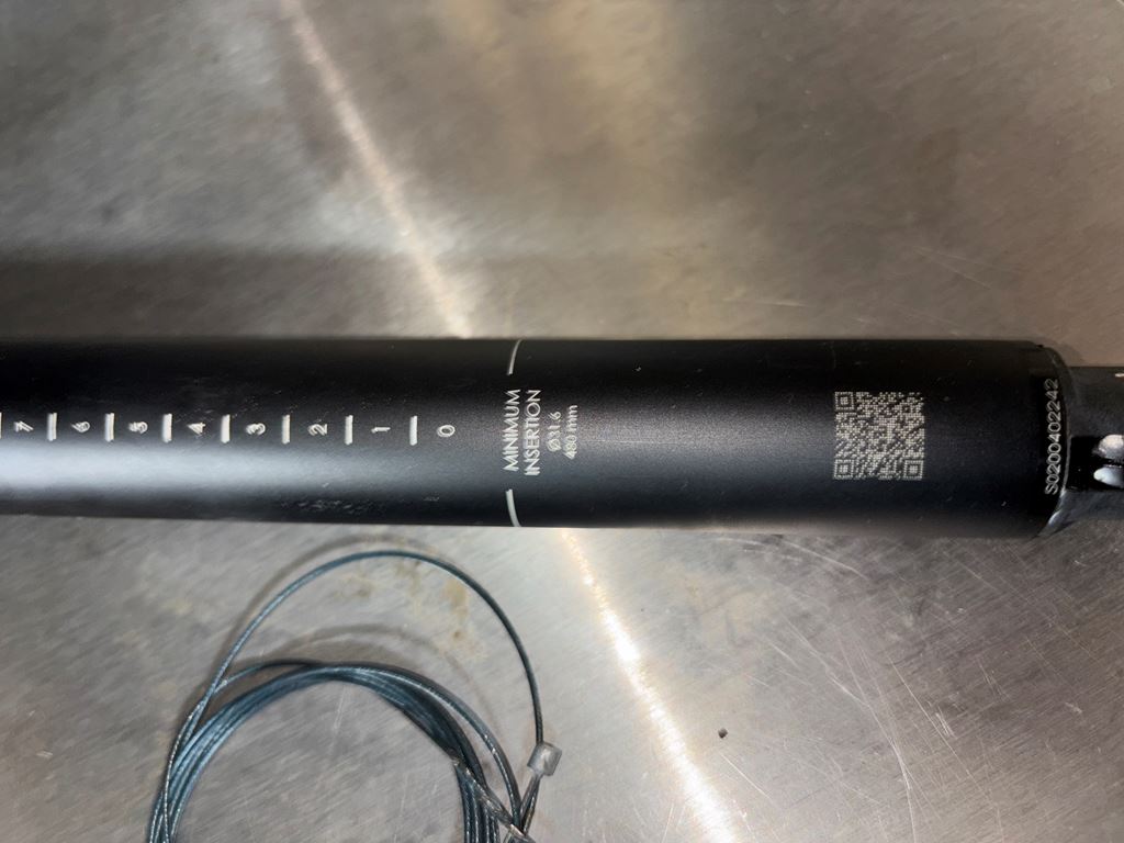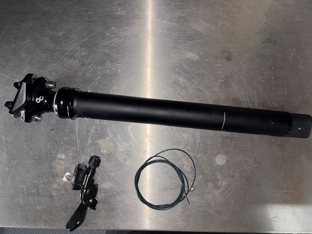 - Tige de selle télescopique Diamètre: 31.6 Débattement: 170mm Très peu utilisée, a été changée pour un modèle sans câble Vendue avec manette, câble et gaine