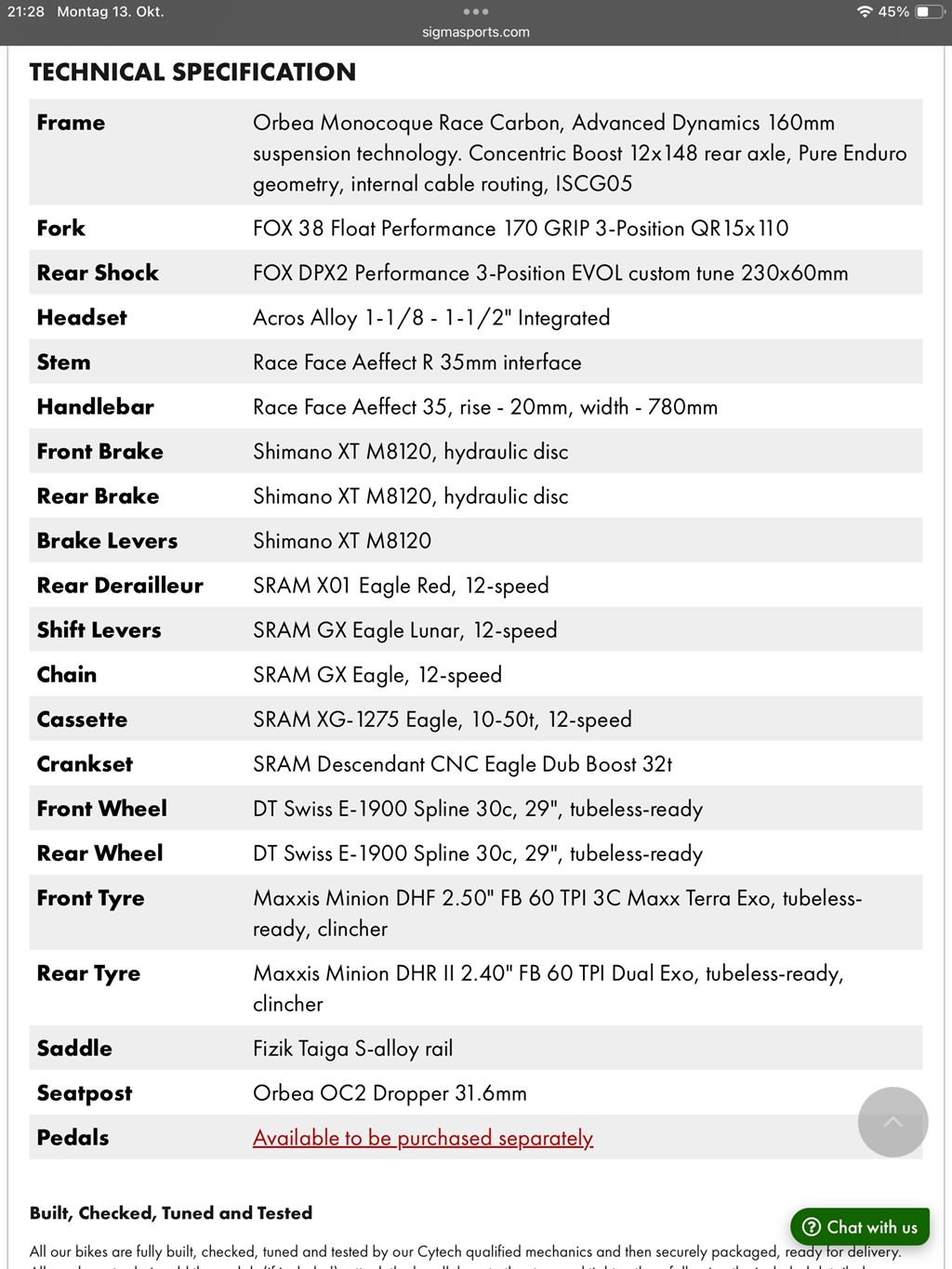 - Verkaufe mein Orbea Rallon aus dem Jahr 2021, das Factsheet findest du unter den Fotos. Das Bike kommt frisch ab einem grossen Service und wurde danach nur 1x gefahren. Was alles gemacht wurde findest du ebenfalls unter den Bildern. Zudem wird der original Sattel und die original Lenkstange beim Verkauf montiert, welche auf den Fotos abweichen. Beide Teile sind neu. Zudem ist das elektrische Schaltwerk SRAM GX Eagle AXS auf dem Bike. Das Bike hat immer Freude gemacht, wird aber mittlerweile zu wenig gebraucht und sucht deshalb einen neuen Besitzer der es artgerecht benutzt ;-)