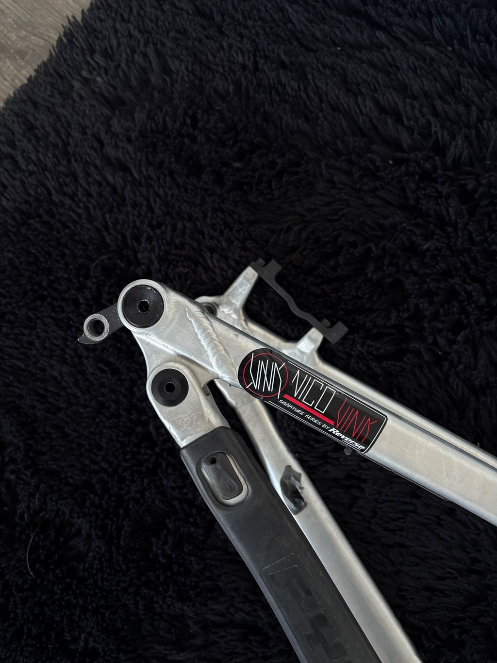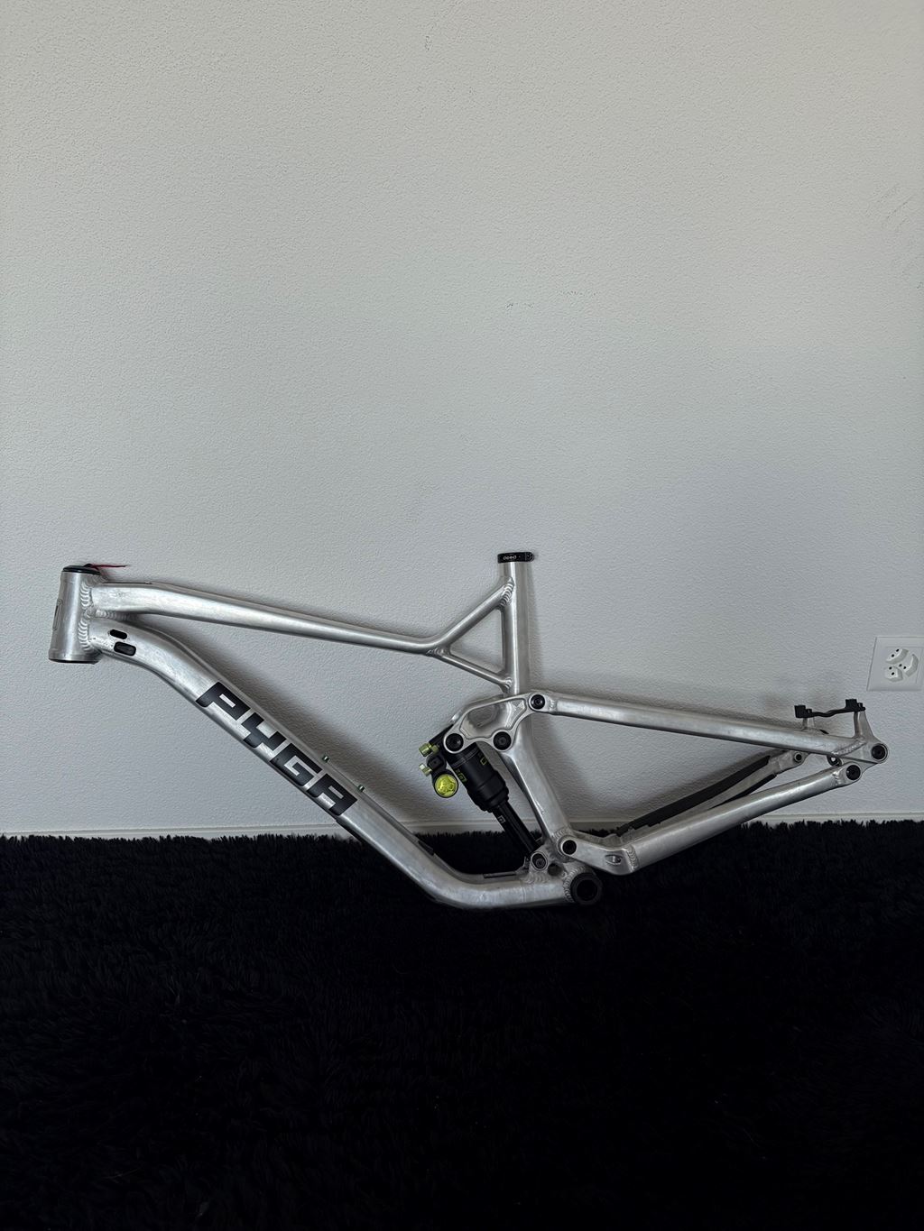 - Pyga Slackline Hp 3 in L Der Rahmen ist in einem guten gebrauchten Zustand. Er braucht aber eine neue Dämpferhalterungsschraube, da diese Rund geworden ist. (20Chf) Die Lager sind alle neu und Dämpfer funktioniert auch noch. (bräuchte jedoch einen kleinen Service). Mit zum Rahmen gebe ich ein SRAM Tretlager, einen Cane Creek Steuersatz und einen Bremsadapter für 200mm Bremsscheiben. 29“ Zoll 480mm Reach Bei Fragen sehr gerne melden.