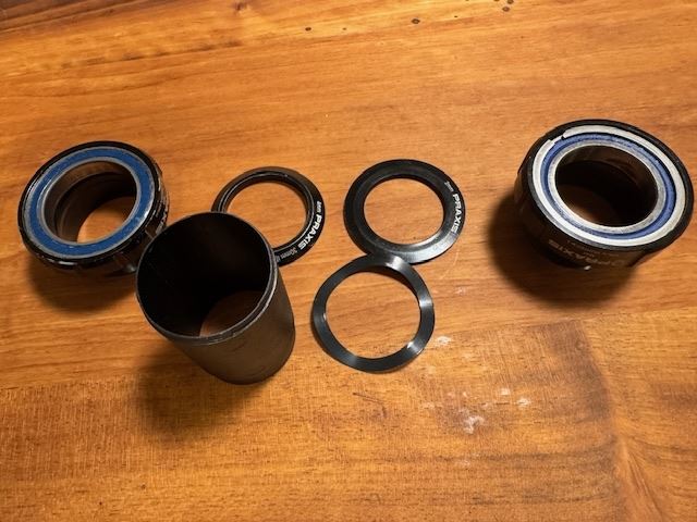 - Gebrauchte, ehrliche Kurbel ohne mechanische Einschränkungen. 170mm für diverse Kettenlinien geeignet (49-56mm je nach Offset des Kettenblattes). War 2 Jahre in Gebrauch. Kosmetische Beeinträchtigungen sind vorhanden (siehe Bilder). Mechanisch top. Bin die Kurbel an einem BSA Rahmen gefahren und gebe deshalb das passende BSA Lager zur Kurbel dazu. Lager laufen prima und haben noch einiges an Leben vor sich. Pedalgewinde sind einwandfrei. Mit dabei ist auch ein Kettenblatt (32t) für die 52m Kettenlinie (Boost). Bin das Kettenblatt bis zum Schluss gefahren, allerdings müsste dieses bald ersetzt werden. Kurbel und Lager wurden sauber gereinigt. Einbauen und losfahren!