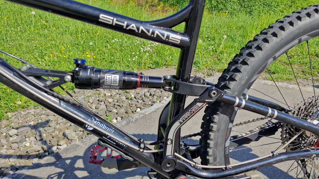 - Production Privée Shan No.5 Stahl-Enduro / Alpintouren-Bike, Custom-Aufbau, Hope / X0 / Newmen Ausstattung / Aufbau: Federgabel: Formula Selva 160 mm Dämpfer: Rock Shox Deluxe (2025) Bremsen: Hope V4 vorne / Hope E4 hinten, Stahlflexleitungen Antrieb: SRAM X0 Eagle, 12-fach Sattelstütze: 9point8 Sattel: SQlab 612 active 2.1 Laufräder: Newmen 30 Evolution Naben / Radlager vorne und hinten: Hope Tretlager: Hope Steuersatz: Hope Lenker: SQlab Carbon Reifen: hinten Maxxis / vorn Wolfpak Regelmässige Wartung bei Freeberg in Buchs Das Bike wurde in erster Linie für Touren in den Alpen genutzt und befindet sich technisch in sehr gutem Zustand. Optisch sind normale Gebrauchsspuren, dem Alter und Einsatz entsprechend, vorhanden. Laufleistung ca. 7000km. Bremsbeläge vorn und hinten ersetzt. Bremsen entlüftet. (April 2026) 1 x neue originale Bremsbeläge für die Hope V4 Hinweise: Kein Notverkauf. Besichtigung und Probefahrt nach Absprache in Schötz (Lu) oder Mauren (FL) möglich. Verkauf ab Platz, ohne Garantie und Rücknahme.