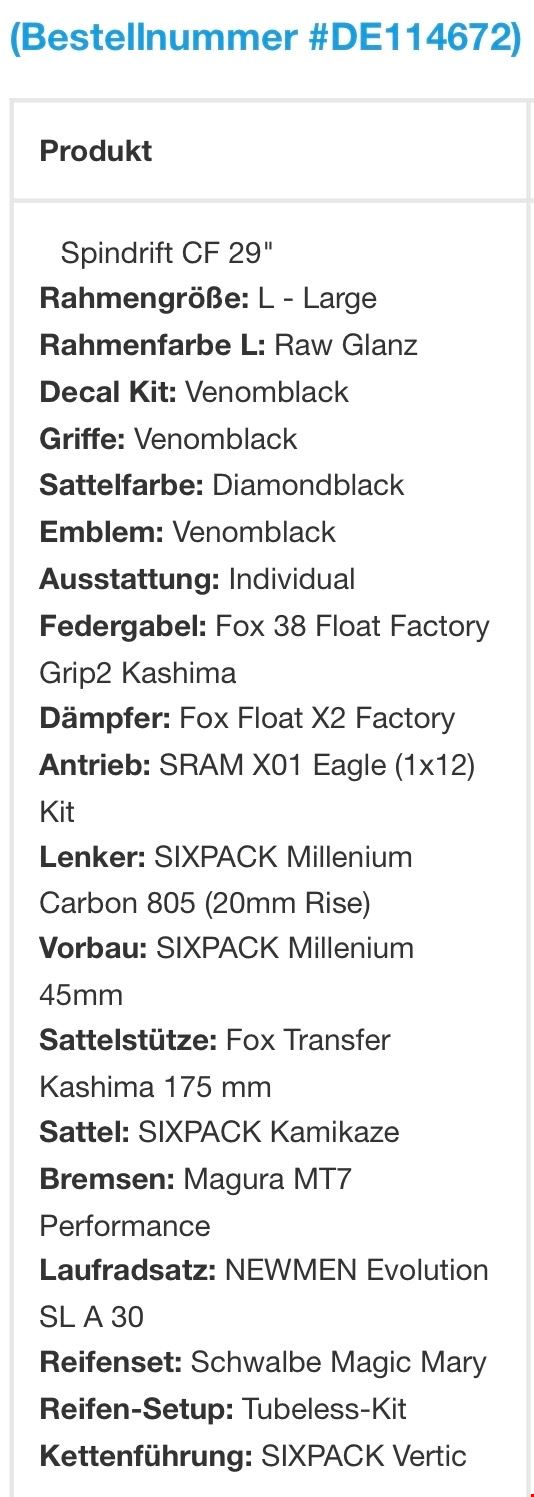 - Top-Enduro / Freeride Bike – neuwertiger Zustand – frisch revidierter Dämpfer Ich verkaufe mein absolut hochwertiges Spindrift, da ich als Papa weniger zum Fahren komme und auf ein kleineres Bike (Hugene) umgestiegen bin. Das Bike wurde nie im Bikepark gefahren, sondern ausschliesslich auf normalen Trails – entsprechend ist der Zustand aussergewöhnlich gut. Highlights • 180 mm Federweg – maximale Reserven bergab • Frisch ersetzter Fox-Dämpfer (0 km gefahren!) • Komplett foliert → Rahmen praktisch wie neu • Keine Stürze • Top gepflegt & sofort einsatzbereit • High-End Komponenten verbaut Zustand & Details Ich habe das Bike 2021 gekauft, nachdem ich mit einem anderen Hersteller zwei Rahmenbrüche hatte. Das Spindrift hat mich mit seiner extrem robusten Bauweise überzeugt – genau das hat es auch gehalten. Trotzdem habe ich relativ schnell gemerkt, dass mir die 180 mm Federweg für meinen Fahrstil zu viel sind. Deshalb wurde das Bike weniger hart bewegt, als es eigentlich könnte. • Der Dämpfer wurde diesen Herbst von Fox ersetzt und ist komplett neu (alte Serie war fehlerhaft von Fox) • Die Dropper Post (175 mm) funktioniert gut, hat aber bei kalten Temperaturen manchmal leichtes „Zicken“ beim Ausfahren (im Sommer kein Problem) Fazit Ein perfektes Bike für alle, die ein extrem stabiles, abfahrtsorientiertes Enduro/Freeride-Bike suchen – mit massiven Reserven und in Top-Zustand!
