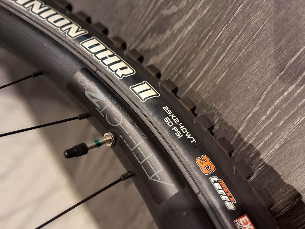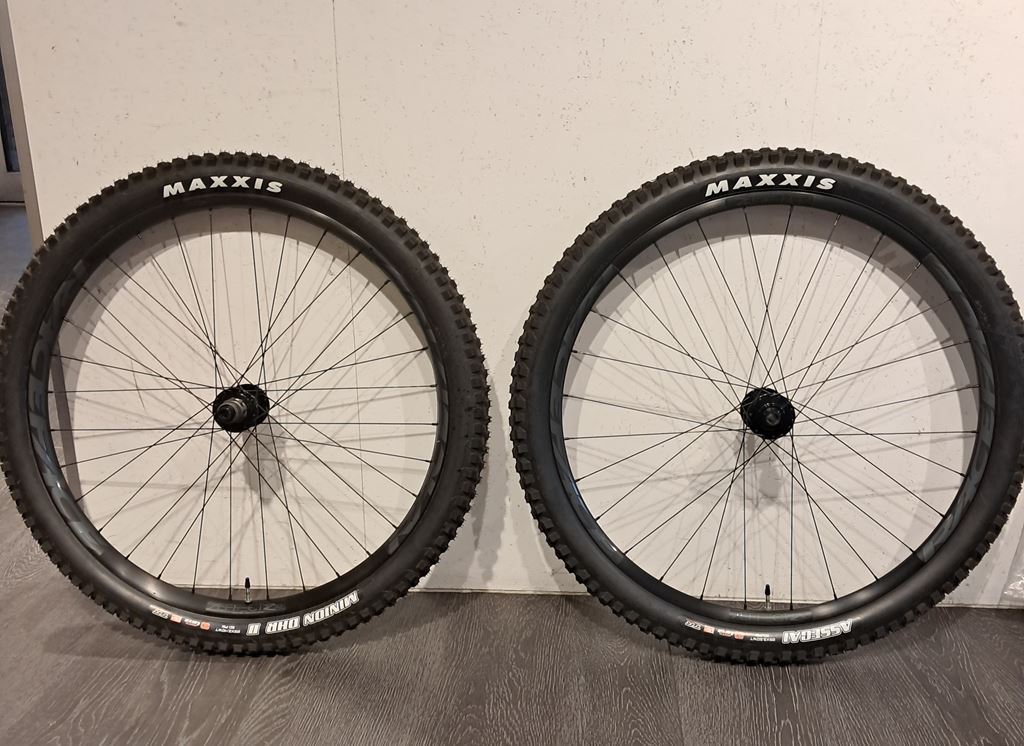 - Laufradsatz Race Face Aeffect R30 Felge und Trace J615/ J624 Nabe 29" vorne und hinten, 15x110 und 12x148 Boost 6 Loch Scheibe, XD Freilauf Maxxis Assegai und DHR II 3C, Exo+, MaxxTerra Reifen Von Neubike demontiert mit Reifen 449.- ohne Reifen 399.-