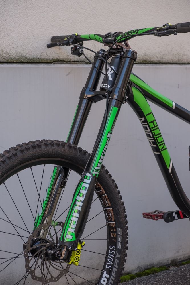 - Du wolltest schon immer mal ein Downhiller eines Worldcup-Fahrers dein Eigen nennen? Ich verkaufe das originale Radon Swoop 200 von Nick Beer aus dem Radon Magura Factory Team. Leider bin ich die letzten Jahre nicht mehr dazu gekommen, das Bike auszufahren... Rahmen: Radon Swoop 200 Gabel: Manitou Dorado, getunt mit Charger-Dämpfer Dämpfer: Fox DHX2, 450x2.75 SLS Feder Antrieb: Sram XO DH, 7sp Radsatz: DT Swiss FR1950 Classic Lenker: Answer ProTaper 78cm Vorbau: Answer 45-55mm einstellbar Sattelstütze: Answer SL Carbon Sattel: Ergon Bremsen: Magura MT7 Race Line Bereifung: Schwalbe Magic Mary, soft hinten, ultrasoft vorne, SuperGravity Extras: Neuer Schwalbe Magic Mary soft SuperGravity, Schläuche, Vittoria Airliner Tire Insert gibt es obendrauf. Bike wird ohne Pedale verkauft. Die Gabel war vor den letzten beiden Bikepark-Tagen beim SuspensionCenter im Service. Der Radsatz wurde total an 8 Tagen im Bikepark gefahren.