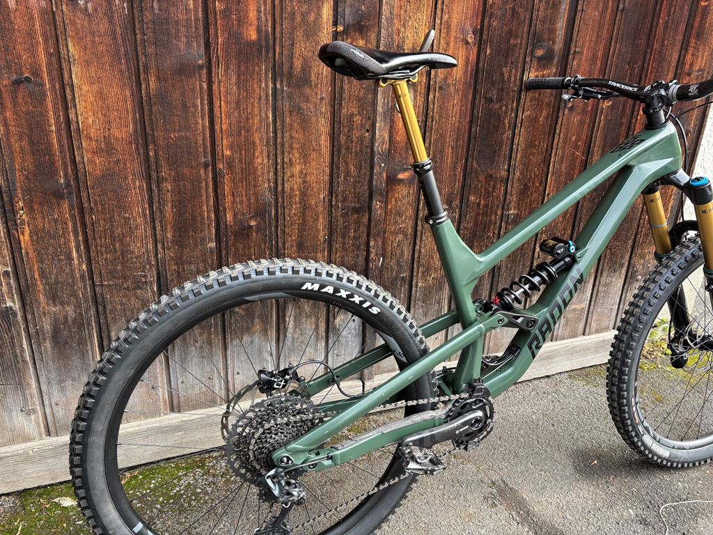 - Verkaufe mein Rennbike 2025 Preis VB, Neupreis 5200 Gewinnerbike des Schweizer Enduro Rennen (SES) Laax (siehe Bilder oder insta @beer.man.1) Radsatz/Reifen Fabrikneu (ungebraucht) Gabel von 170mm auf 180mm umgebaut inkl. komplettem Tuning durch profi Suspensioncenter. ch Wahlweise Dämpfer hinten entweder Luft (Fox Float x) oder Coil (Fox DHX2, neues Model) Grösse L (perfekt für Personen 1.70-1.90cm) 6 paar Ersatz Bremsbeläge 2x Ersatz Ausfallenden Full original specs: Rahmen: SWOOP (Gewicht: 3.150g; Material: Maximale Reifenbreite: 2.4"; Schaltauge: #8651) Rahmenmaterial: Vollcarbon Hauptrahmen / Aluminium Hinterbau Laufradgröße: 29" Anzahl Gänge: 1 x 12 Farbe: nato / deepblack Gabel: Fox 38 Factory, FIT GRIP2, Kashima, Boost (Nachlauf: 44mm) Dämpfer: Fox Float X2 Factory, 2-Pos., EVOL LV, Kashima (Einbaumaß: 230 x 65mm; Buchsenmaß: oben: 8 x 20mm / unten: 8 x 20mm) Federweg: 170mm/ 170mm Bremsen: Hayes Dominion A4 Bremsscheiben: Hayes D8, 203/203mm, 6-bolt Steuersatz: Acros Angleset, ZS44/ZS56 Vorbau: Race Face Turbine R, Ø35 (M: 40mm; L: 40mm; XL: 40mm) Lenker: Race Face SixC Carbon, 35 x 820mm, 35mm rise Griffe: SDG Thrice Sattel: SDG Bel Air V3, Lux alloy Sattelstütze: Fox Transfer Factory, Kashima, Ø31.6mm (M: 125mm Hub; L: 150mm Hub; XL: 150mm Hub) Kurbel: SRAM X1 Eagle Carbon, DUB, 30T, Boost, 170mm Tretlager/Innenlager: SRAM, DUB, BSA 73mm Schaltwerk: SRAM X01 Eagle, 12-speed Schalthebel: SRAM GX Eagle, Shiftmix Kettenführung: MRP SXg Alloy, ISCG05 Kassette: SRAM GX Eagle XG-1275, 10-52 Kette: SRAM GX Eagle Reifen vorne: Maxxis Assegai 3C, MaxxTerra, EXO+, TR, 29" x 2.5" WT Reifen hinten: Maxxis Minion DHR II 3C, Maxxterra, EXO+, TR, 29" x 2.4" WT Laufradsatz: Newmen Evolution SL A.30, 110/148mm (Maulweite: 30mm; Tubeless ready: ?; Tubeless Ventile: nicht enthalten; Tubeless Felgenband: 32-33mm, nicht enthalten; Tubeless Milch: nicht enthalten) Pedale: nicht im Lieferumfang enthalten Zulässiges Gesamtgewicht: 115 kg (Körpergewicht + Fahrrad + Ausrüstung) Gewicht Komplettrad: ab 15,10 kg