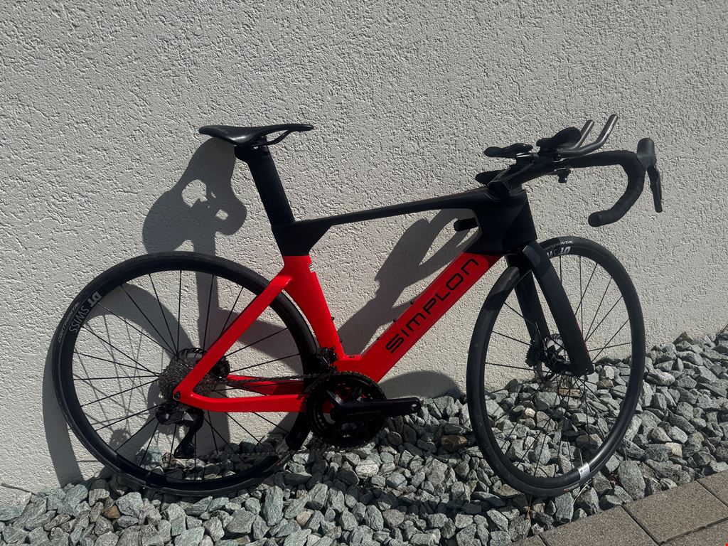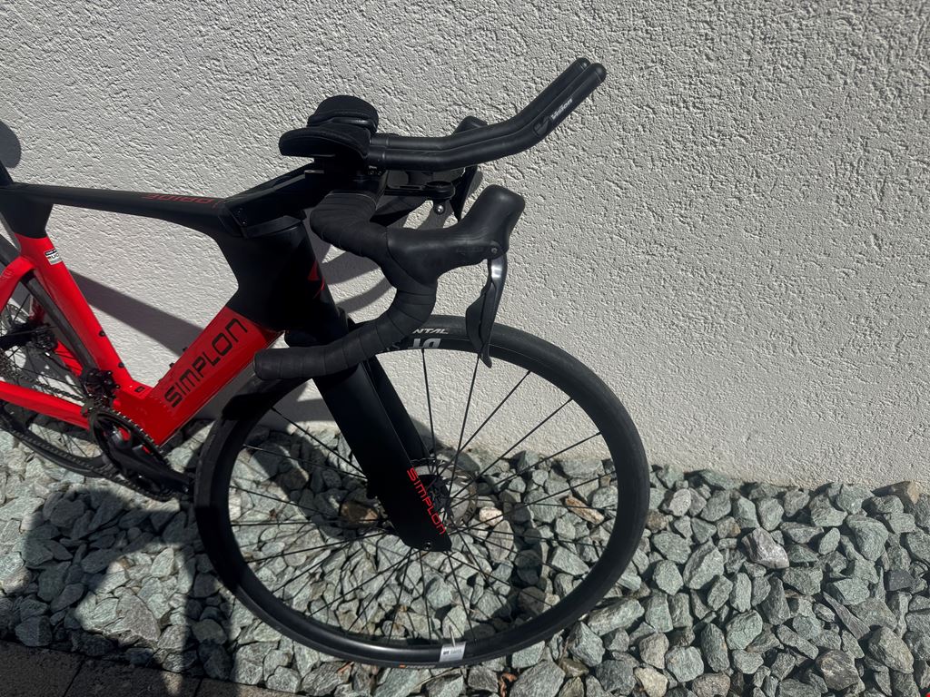 - Simplon Pride II Ein sehr schnelles Rad für Triathlon-Wettkämpfe sowie Grouprides. Die aerodynamischen Formen dieses Bikes, machen es zum schnellsten UCI-legalem Fahrrad, dass man momentan kaufen kann. Ich bin dieses Rad 2 Jahre lang im Training und an Wettkämpfen gefahren. Dieses Jahr wurde der Rahmen, die Sattelstütze sowie der vordere Bremssattel ausgetauscht, diese Komponenten sind also brandneu mit 0km Laufleistung. Die restlichen Komponenten sind ca. 2 Jahre alt und wurden stets gepflegt. Dank dem Triathlonaufsatz von Vision macht man das Bike innerhalb von 5min zu einem TT-Bike und ist bereit um Triathlonwettkämpfe zu bestreiten. Wenn man ihn nicht mehr braucht, ist der mit vier Schrauben wieder demontiert. Das Bike besitzt eine komplette Shimano Ultegra DI2, 12 Fach Schaltgruppe und ist mit einem beidseitigen Powermeter ausgestattet. Die Quittung vom Kauf ist selbstverständlich vorhanden und das Bike darf gerne besichtigt werden.