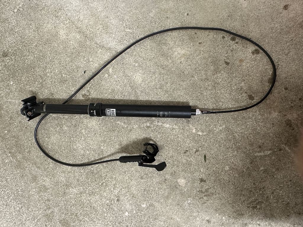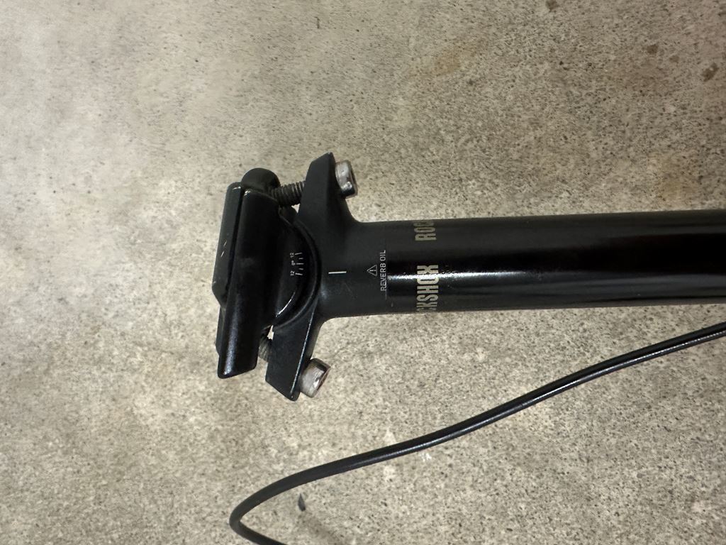- Rock Shox telescopic seatpost with hydraulic control from the handlebars. This is an innovated B1 model for the 2018 season with a new 1X lever that can be used instead of the left gear. Seatpost is functional but is not so smooth anymore. New price: 397CHF * stroke: 150 mm (length 440 mm) * zero offset is suitable for modern all-mountain and enduro bike frame geometries * ergonomically shaped hydraulic control lever, Matchmaker X compatible * hose line only insideframe * locking in any position * smooth running, smooth extension, adjustable extension speed * Connectamajig quick coupler * fixed lock for two screws facing each other - compatible with 7 mm (alloy) or 9 mm (carbon) rails * package includes seatpost, hydraulic line, 1X lever including sleeve and Reverb Bleed Kit. * weight 600 g