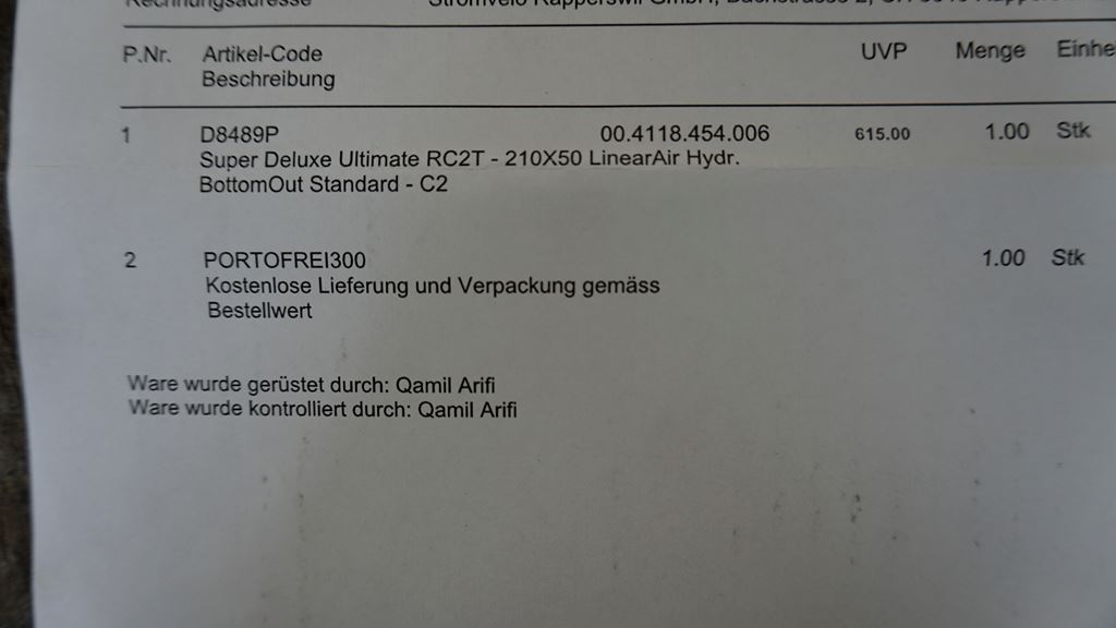 - Neu und ungebrauchter RockShox Super Delux Ultimate RC2T Dämpfer. Einbaumass: 210mm Hub: 50mm NP: 615.- Beleg vorhanden vom 16.05.25 (Garantie).