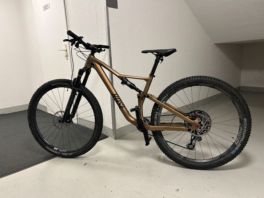 - ROSE Ground Control 4 – Modelljahr 2024 • Fahrwerk: RockShox Pike Select+ RockShox Deluxe Select+ RT • Antrieb: SRAM GX Eagle, 12-fach (10–52) • Bremsen: SRAM G2 RSC, hydraulisch (180/180 mm) • Laufräder: DT Swiss XM 1700 Spline, 29”, Tubeless Ready • Reifen: Schwalbe Nobby Nic Evo Super Ground, 29×2.4” • Sattelstütze: e*thirteen Vario Dropper Post • Rahmen: Aluminium, Boost, BSA 73 • Federweg: 120 mm vorne / 120 mm hinten • Gewicht: ca. 13,1 kg (ohne Pedale)