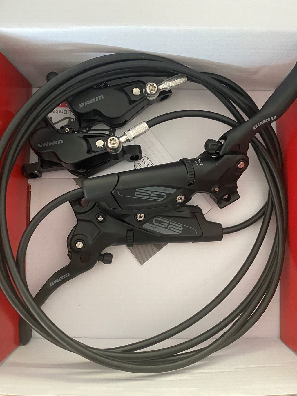 - Verkaufe neue Sram G2 RSC Bremsanlage (aus Komplettrad) Leitung vorne ca. 78cm Leitung hinten ca. 165cm Bremsanlage muss entlüftet werden, da sie entkoppelt war. Lieferumfang: Vorder- und Hinterbremse Lenkerhalterung 2x 200mm SRAM Centerline Bremsscheiben KEINE Adapter ! Keine Garantie und Gewährleistung meinerseits.