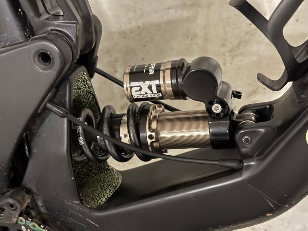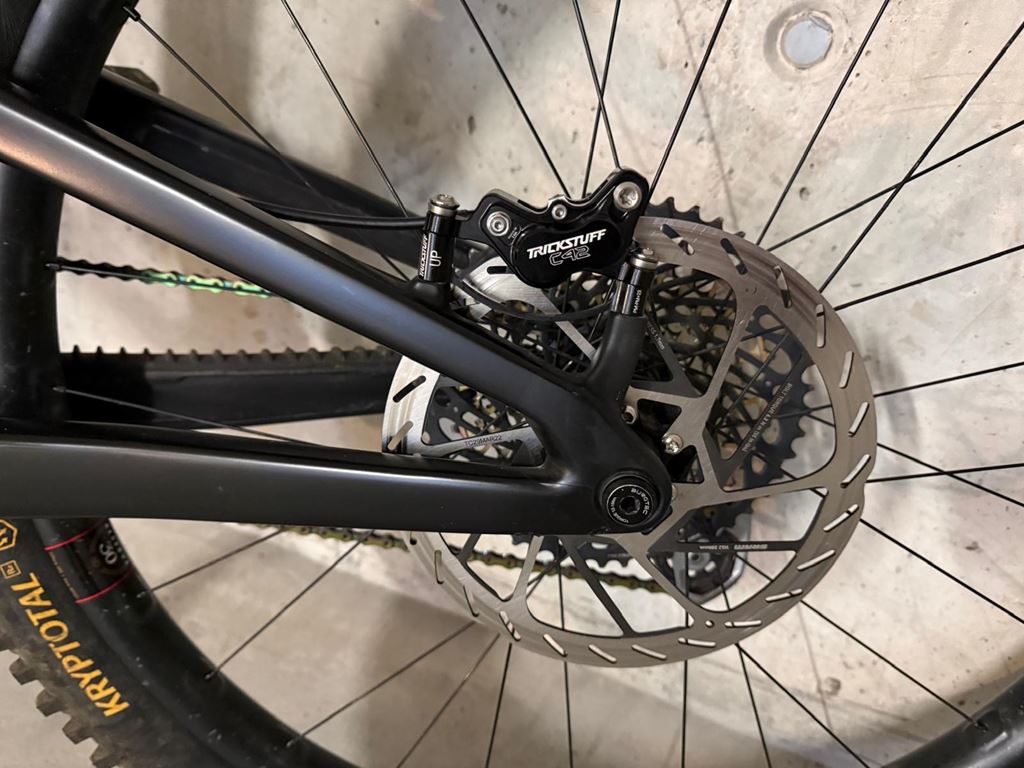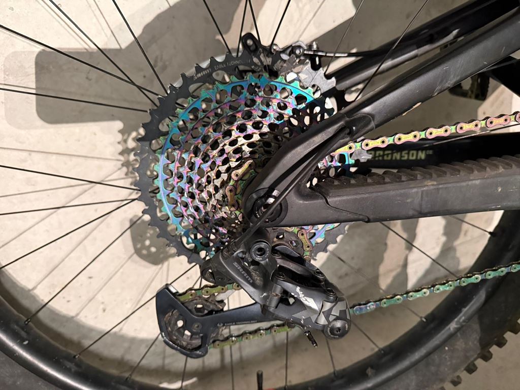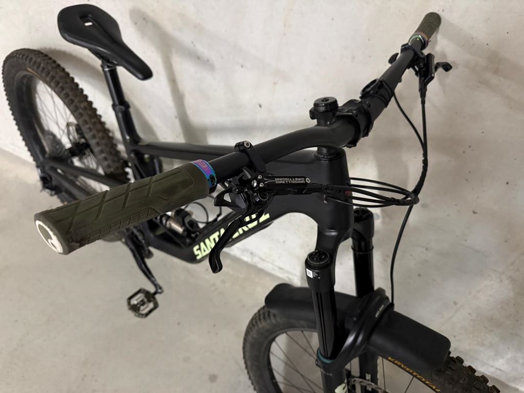 - Santa Cruz Bronson V4.1 Leichter, hochwertiger CC Rahmen, Grösse L Es handelt sich um einen Custom Aufbau mit absoluter Traum Ausstattung!!! Der Rahmen ist foliert, das Rad hat einige Gebrauchsspuren, aber keine strukturellen Beschädigungen. Ausstattung: - Fox 38 Performance Elite mit Grip X2 Dämpfer Upgrade, so gut wie neu , frisch ab Service (inkl. SKF Dichtungen) - EXT Storia v3 Stahlfederdämpfer mit Custom Tune, frisch ab Service - Trickstuff Direttissima Bremse (C42 Sättel) - SRAM HS2 220/203mm Bremsscheiben (neu) - OneUp Carbon Lenker mit 35mm Rise - Chris King Headset - Bikeyoke Revive Sattelstützer mit 185mm Hub - 5 DEV Kurbel (170mm) mit Wolftooth 32T Kettenblatt - SRAM X01 Schaltwerk, Trigger, Kassette und Kette - E13 Carbon Hinterrad mit Sidekick Nabe, eliminiert Pedal Kickback - neues Crankbrothers Synthesis Carbon Vorderrad - Maxxis High Roller/DHR2 Exo+ Pneu - Glovebox mit neuen Taschen Da Bike wird ohne Pedale und ohne Flaschenhalter verkauft.
