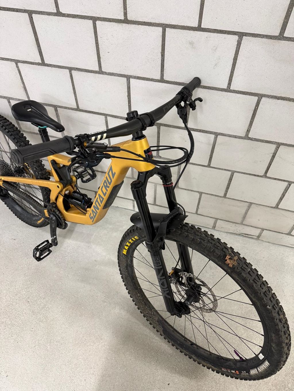 - Santa Cruz Bronson v4 CC Custom Aufbau Das Rad hat ein paar Gebrauchsspuren, aber befindet sich in einem guten Zustand, der Rahmen ist tiptop! Grösse S Ausstattung: - fast neue Rockshox Lyric Select+ 160mm Charger 3 - wenig gefahrener Rockshox Superdeluxe Ultimate Dämpfer 230x60mm - Shimano Saint Bremse - Trickstuff D$chle 203mm Bremsscheiben - Deity Carbon Lenker - 77 Designs Vorbau - Rockshox Reverb Sattelstütze - SRAM GX Antrieb mit Carbon Kurbel - Raceface AR30 Laufradsatz - Continental Kryptotal Pneu (Vorderreifen wird noch gewechselt - Ergon Sattel - Shimano Pedale