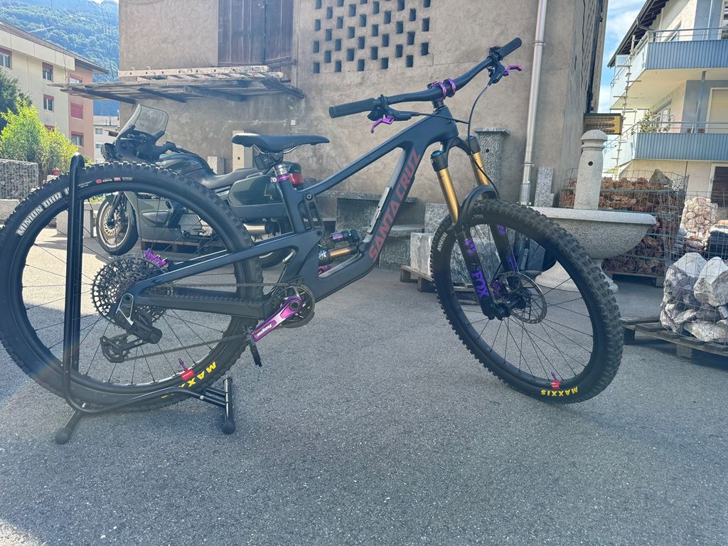 - Ich verkaufe mein Santa Cruz Nomad 6 CC Carbon, Jahrgang 2024, Rahmengrösse S, in absolut neuwertigem Zustand. Sehr wenig gefahren, nur privat, kein Bikepark, keine Rennen. Neupreis über CHF 11’000.– (alle Rechnungen vorhanden) Kauf 2024 bei Rodeo Bike Co. Laufrad-Setup: MX / Mullet (29” vorne / 27.5” hinten) Federweg vorne: 180 mm (Fox 38 Factory Kashima) Federweg hinten: 170 mm (Fox Float X2 Factory) Ausstattung: - Bremsen: TRP Dominion – Limited Edition VIOLET - Laufräder: Santa Cruz Carbon - Antrieb: SRAM GX Eagle AXS (elektronisch) - Sattelstütze: SRAM Reverb AXS - Kurbel: Hope - Reifen: Maxxis - Diverse Custom-Parts in Violett Zustand: Technisch einwandfrei, keine Stürze, keine Risse. Sehr gepflegt und frisch gereinigt. Probefahrt möglich & erwünscht. Abholung bevorzugt, Versand nach Absprache.