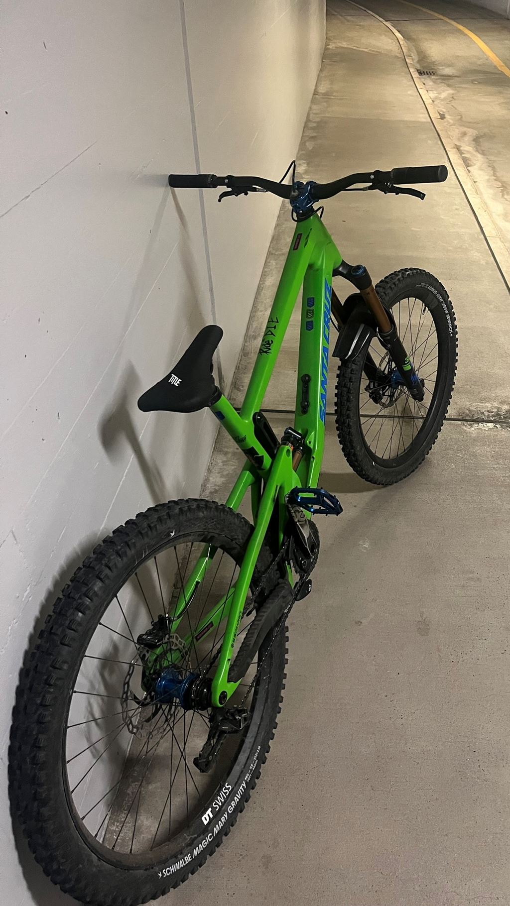 - Ich verkaufe hier schwerherzens mein geliebtes Nomad. Ich habe es jetzt ca. 2 Jahre und war immer sehr zufrieden damit. Der alte Rahmen hat 2 Risse, deswegen habe ich ein neues Vorderdreieck auf Garantie bekommen(im Preis enthalten). Ich finde es für den Bikepark das beste Bike welches ich je hatte, es springt sehr gut und lässt sich sehr gut in der Luft händeln. Der Grund wieso ich es verkaufe ist, dass ich mir mein Dreambike kaufen möchte aber mein Portmonaie ist nicht so gross für 2 Top Klasse Bikes. Verbaute Parts: -Fox 38 Factory 180 -Fox X2 Factory oder RS Vivid Ultimate Coil -Hope Tech 4 V4 -Vorne Ibis 471 Carbon Felge mit Hope Pro 5 Nabe -Hinten DT-Swiss Fr541 Alu Felge mit Hope Pro 5 Nabe -Reifen sind Schwalbe Radial Magic Mary Gravity Pro -Singlespeed Kit von Reverse -Kurbel Sram Gx mit O-Chain R -Lenker Burgtec -Vorbau Burgtec -Sattel Title Schwarz -Lager alle von Hope/Cane Creek Aktuell habe ich es auf Barspinsetup umgebaut, kann aber jederzeit geändert werden, wenn es gewünscht wird (nur wenn das Bike anschliessend gekauft wird) Die orginale Kaufrechnung (in Papier) ist vorhanden. Wenn du Fragen hast, schrieb mir jeder Zeit. Preis ist verhandelbar aber bitte faire Angebote machen. P.s ich tausche das Bike auch nicht ausser gehen Forbidden Dreaghtnougt/ Supernought oder Nicolai G1.