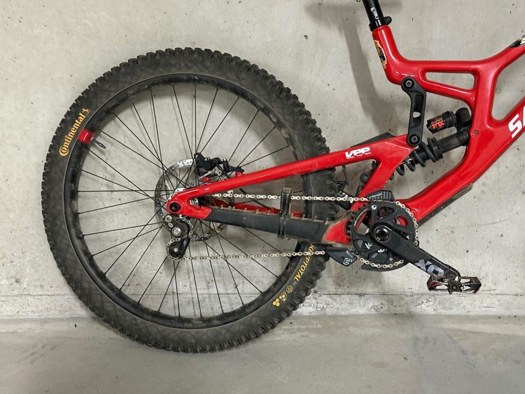 - Santa Cruz V10.8 Grösse L, mit Reserve DH Carbonfelgen Das Rad wurde letztes Jahr regelmässig gefahren, aber dieses Jahr fast nicht mehr bewegt. Gemäss Garmin App wurde es insgesamt knapp 650km gefahren. Hat natürlich ein paar Gebrauchsspuren, aber beifndet sich in einem sehr guten Zustand, Gabelservice mit SKF Dichtungen wurde durchgeführt und die Rahmenlager wurden gewechselt, seitdem wurde das Rad nur 3 mal gefahren. Die Ausstattung ist wie auf den Bildern ersichtlich, die Bremse wird noch durch die originale und ungefahrene Code RSC ersetzt. Aktueller Aufbau: - Fox 40 Factory - DHX2 Factory - OneUp Cockpit - neue, ungefahrene SRAM Code RSC Bremsen - Superlight Stahlfeder 550lbs - Reverse Single Speed Kit Expert - X01 Schaltwerk, Kassette und Trigger werden dazu gegeben - Reserve DH Carbon Felgen, hinten neu eingespeicht mit E*13 Sidekick Nabe (verhindert Pedal Kickback), die original i9 Hydra Nabe wird mitgegeben - Cushcore Trail vorne und hinten verbaut - STFU Kettenführung gegen Kettenschlagen - Ersatz Rahmenlager und ein Fox 40 Service Kit wird dazu gegeben - Verkauf ohne Pedale Es ist noch diverses Zubehör vorhanden, Ersatz Schaltwerk, Hinterrad, etc. Kann bei Interesse zu einem fairen Preis dazu erworben werden.