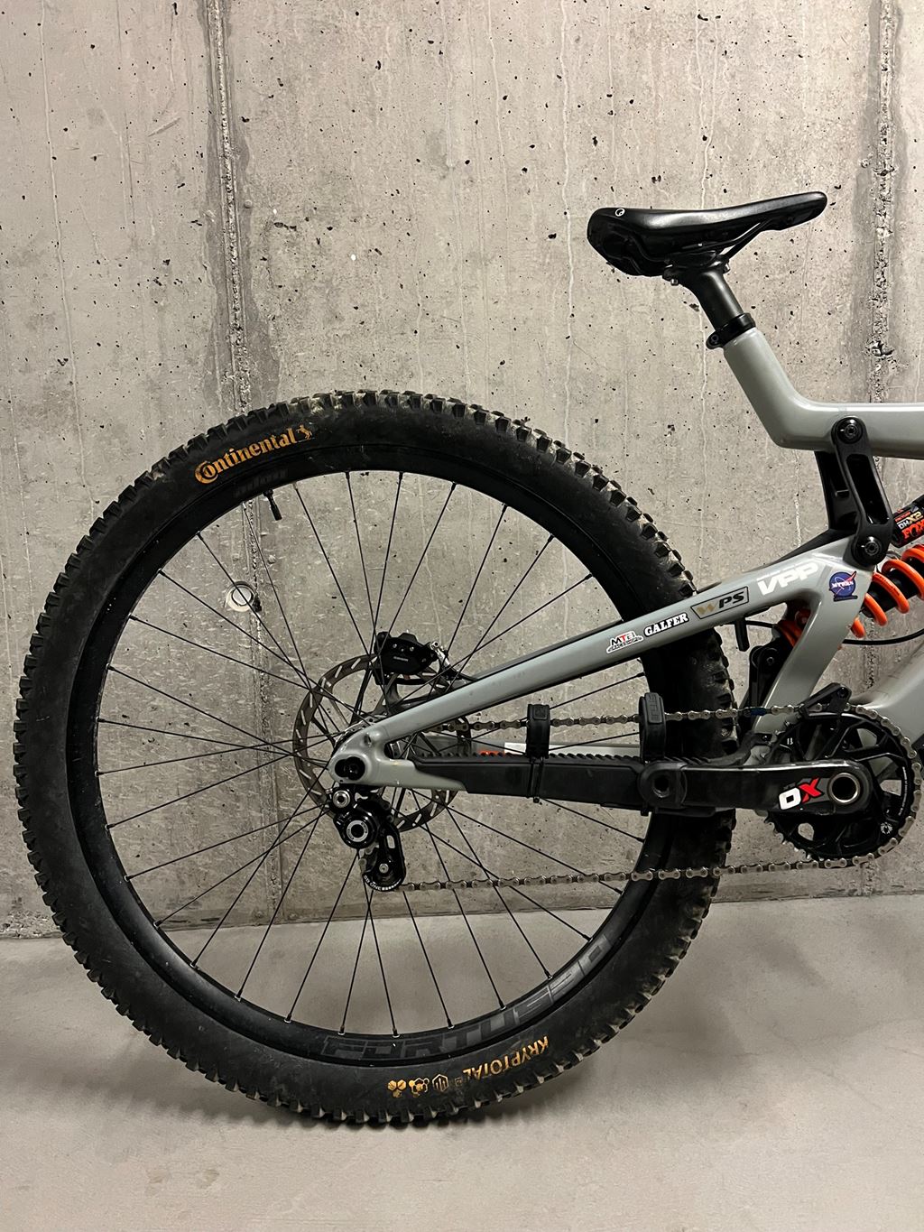 - Super V10 zum Verkauf! Das Bike ist im grossen Service und abholbereit! Rahmen mit RideWrap abgeklebt Gabel: Fox X2 (2025) ab Service Sep.2025 Dämpfer: DHX2 (2023) ab Service Sep.2025 Feder: 500er (70-80kg) & 550er Bremse: Maven v&h neu (ungefahren) Laufradsatz: Industy Nine Hydra mit Hope Fortus Felge von Rock’n’Roots Antrieb: Singlespeed SB One (X01 DH 7 Speed verfügbar gegen Aufpreis). Reifen: bei Abholung neue Conti Reifen.