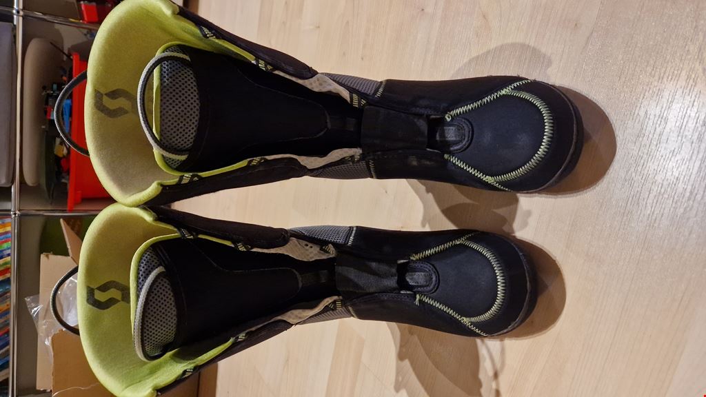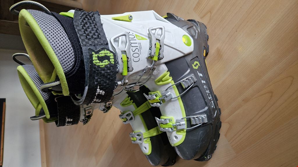 - Scott Cosmos II Tourenstiefel nach 8 Jahren mehrheitlich Abfahrtseinsatz ( ca 10 Tage jährlich ) und wenigen Skitouren. Ich hab Schuhgrösse 41.5 und der Schuh war mir immer leicht zu gross. Alles funktioniert. Innenschuhe voll intakt Mängel: 1 Spannfeder bei Schnalle kaputt, keine Einschränkung bei Schnallenfunktion. Gurt um den Schuh hat klett verloren, wurde neu angenäht