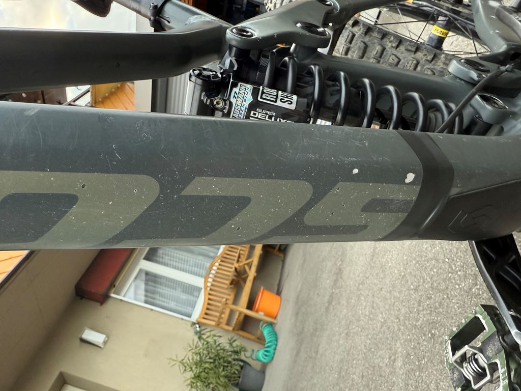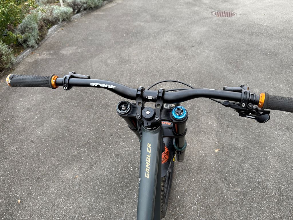 - Scott Gambler 910 von 2022 Spezifikationen: Rahmen: Scott Gambler Gr.M Gabel: Fox 40 Performance Elite (Upgrade Grip2) Dämpfer: Fox Float X Antrieb: SRAM GX DH 7fach Bremsen: Formula Cura 4-Kolben Laufräder: Syncros 29“ Das Bike wurde zuletzt geserviced am 08.10.25. dieser Service beinhaltet: Komplette Reinigung Gabelservice Lager Hinterbau neu Steuerlager gereinigt/ gefettet (sind wie neu) Kontrolle und Einstellung Bremsen Innenlager gereinigt/ gefettet Kontrolle und Einstellung Schaltung Alle Teile funktionieren einwandfrei! Der Rahmen hat einige Gebrauchsspuren die aber nur den Lack betreffen. Keine strukturellen Schäden!!! Optional kann das bike auch mit folgenden Komponenten gekauft werden: Shimano Saint Bremse v/h +200.- Rockshox SuperDelux UltimateDH Coil+300.- Spike Spike Vibrocore Lenker 31,8 30mm Rise 70.- Verkauf ohne Pedale und mit anderen Griffen!!!