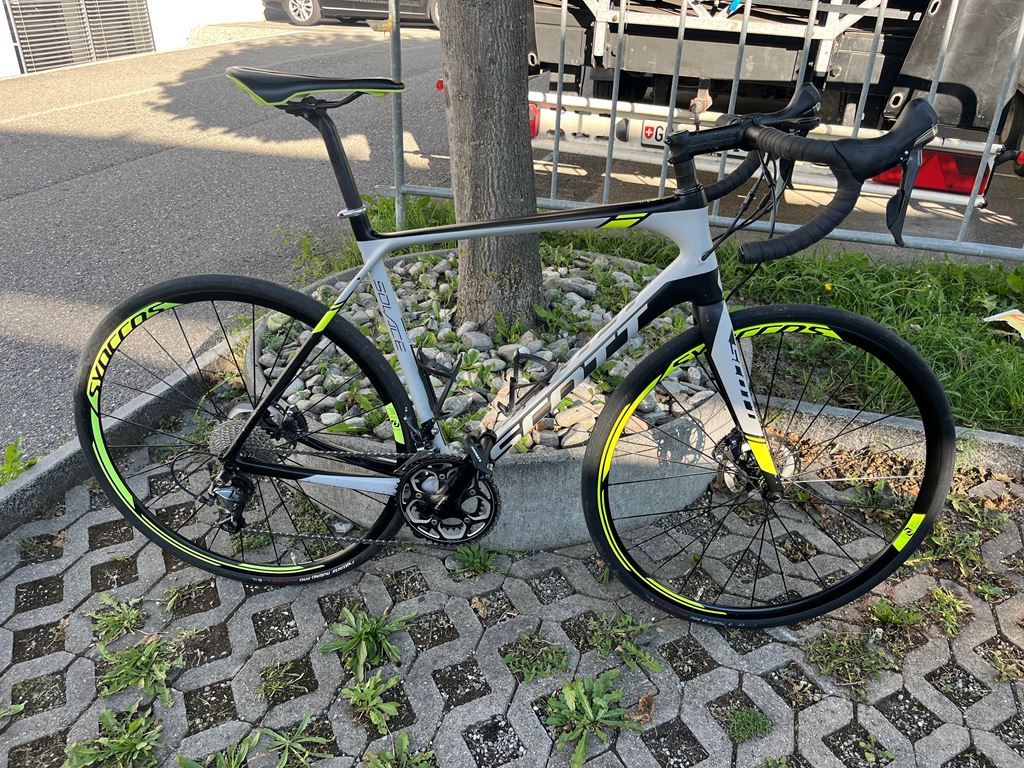 - Verkaufe mein Scott Solace Disc Rennrad mit Rahmengrösse L (175-185cm) Das Rad ist in einem sehr guten Zustand, wurde jährlich gepflegt und ist frisch ab Service. Ein paar leichte sichtbare Gebrauchsspuren. Eckdaten - Carbonrahmen, komfortorientiertes Endurance-Rennrad - Shimano Ultegra Schaltung - Scheibenbremsen - Kassette & Kette komplett neu ausgetauscht - Lenkerband neu - Sehr zuverlässiges, leichtes und komfortables Rad, ideal auch für längere Touren - Look Pedalen inklusive - Garminhalterung inklusive Preis: CHF 1390.00 Privatverkauf, keine Garantie oder Rücknahme. Probefahrt und Besichtigung auf Anfrage.