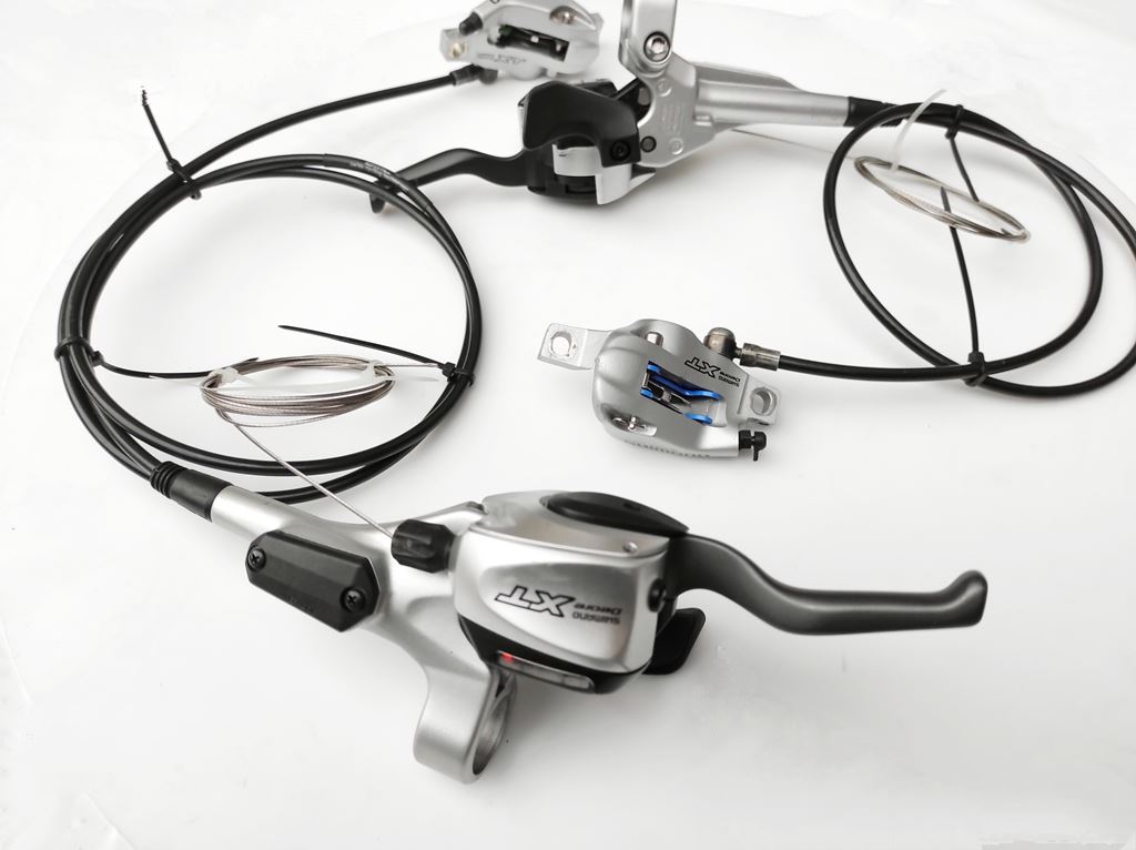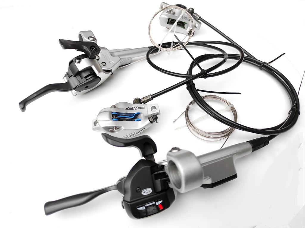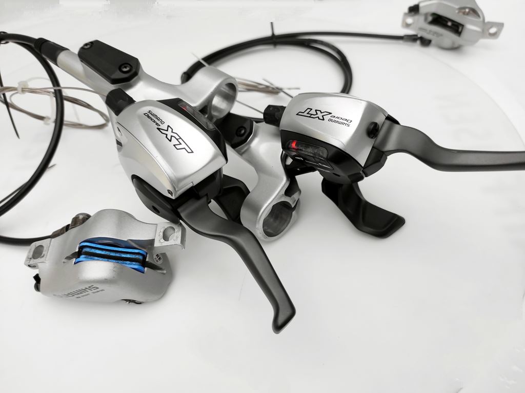 Scheibenbremse: Shimano DEORE XT - ST-M765 3x9s- Brems-/ Schalthebel & BR-M765 Bremssattel