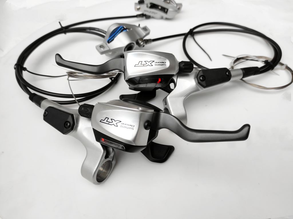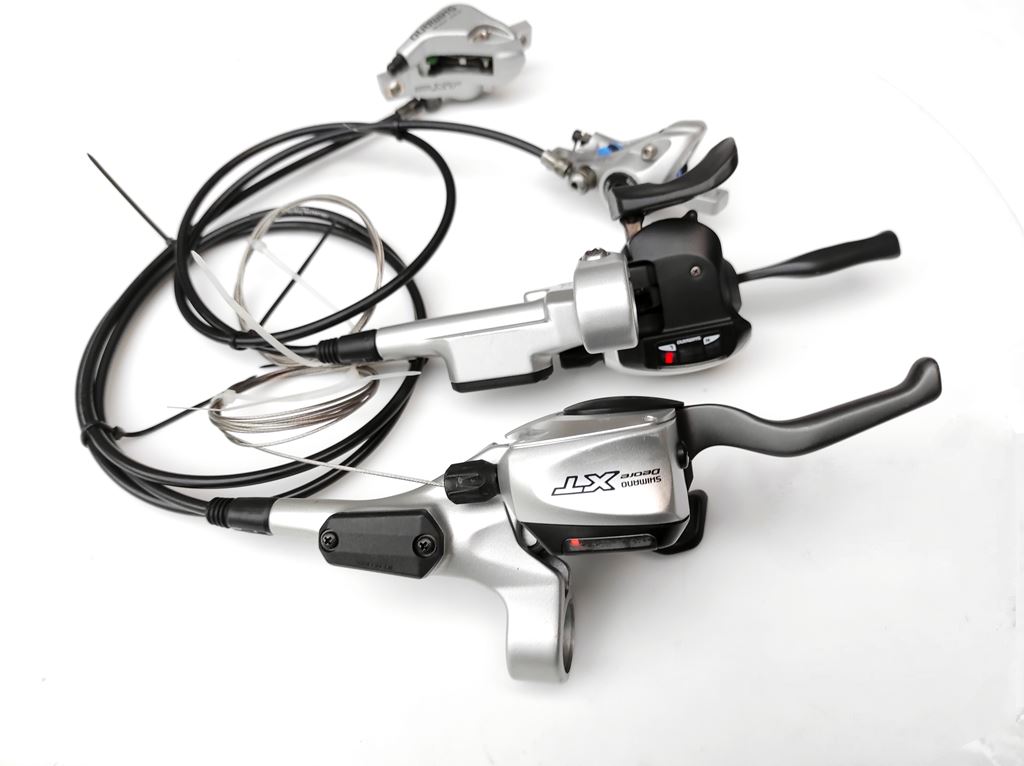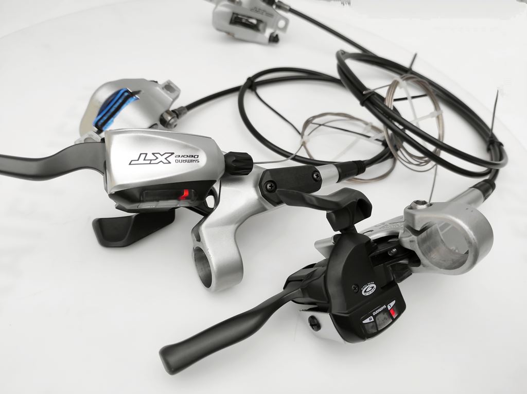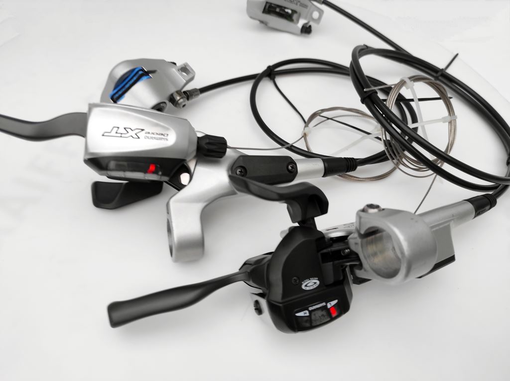 - Bremshebel mit Schalthebel & Disc Bremse Brake SHIFTER Levers Combo Set - MTB Leviers freins et vitesse - VTT / ATB SHIMANO DEORE XT - ST M765 L/R - Brems- / Schalthebel kombi - 3x9 speed SHIMANO Deore XT - BR-M765 L/R - Bremssattel für hydr Disc Brakes - inklusive Bremsleitung - inklusive Bremsbeläge ( vo. Neu ) Bereich : MTB cross country Enduro XC DH Crossbike Fully Citybike Trekking touring Ausführung : Bremshebel / Schalthebel Kombination Schalthebel TYP : multi control Shifters Optische Ganganzeige : Ja Schaltstufen : links 3-fach ( Umwerfer ) rechts 9-fach ( Schaltwerk ) Bremsen : hydraulische Scheibenbremse Bremskörper : 2-Kolben Bremsbeläge : vo. Neu / hi. gebraucht Kompatibel : XTR XT Deore Alivio mit 3x9s Antriebe und hydraulische Scheibenbremse Lieferumfang : gemäss Bilder Schalt-Bremshebel Paar - mit Schaltkabel Bremssattel Paar mit Beläge & Leitungen ZUSTAND : occasion - Neuwertig - Optisch : kaum Gebrauchsspuren - Technisch : Einwandfrei - Gereinigt und geprüft - Einbaufertig Versandkosten CHF 8.50 TWINT Zahlung möglich Beachten Sie meine weitere Angebote von Rennvelo / Mountainbike / Style Bikes / Citybike - Fahrrad Zubehör & Ersatzteile Bremsen Daumenschalthebel Trigger Tektro Lenkerschaltung STi scott sram marin Felt kettenschaltung Trek cannondale Specialized bmc racing wheeler yeti cube koba stevens ritchey merida univega raleigh dérailleur gt suntour canyon bontrager magura orbea price racer mbk KTM bixs Ibex Cresta Tour de suisse tds Avid bergamont Kettler Villiger Wilier cilo Allegro Tigra Gerber Lapierre Radon reverse hope niner commencal radio