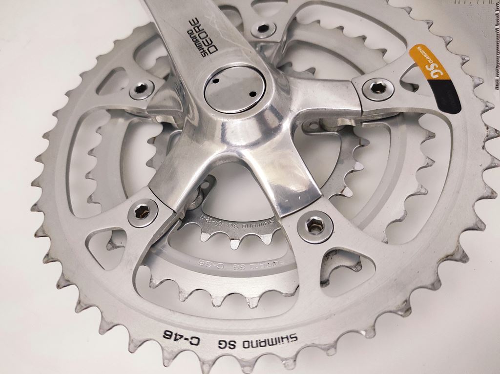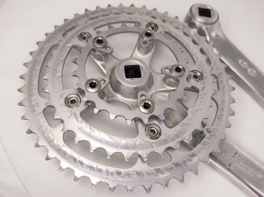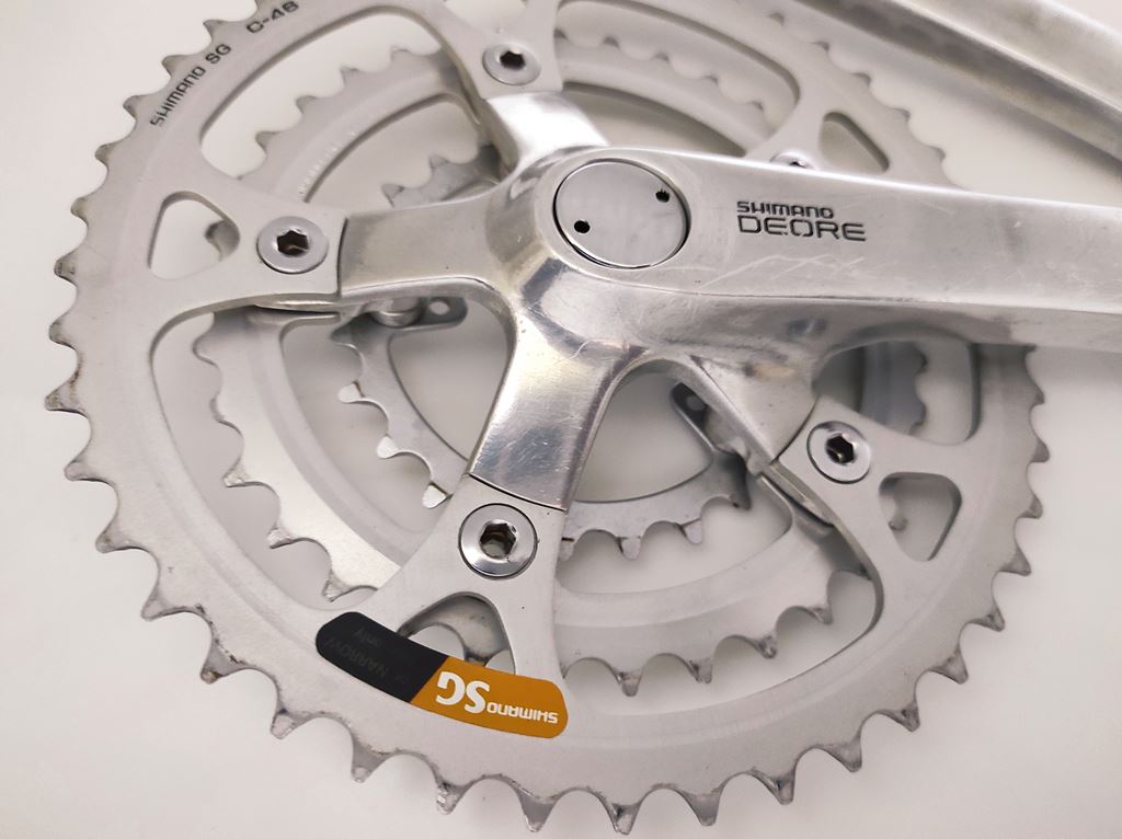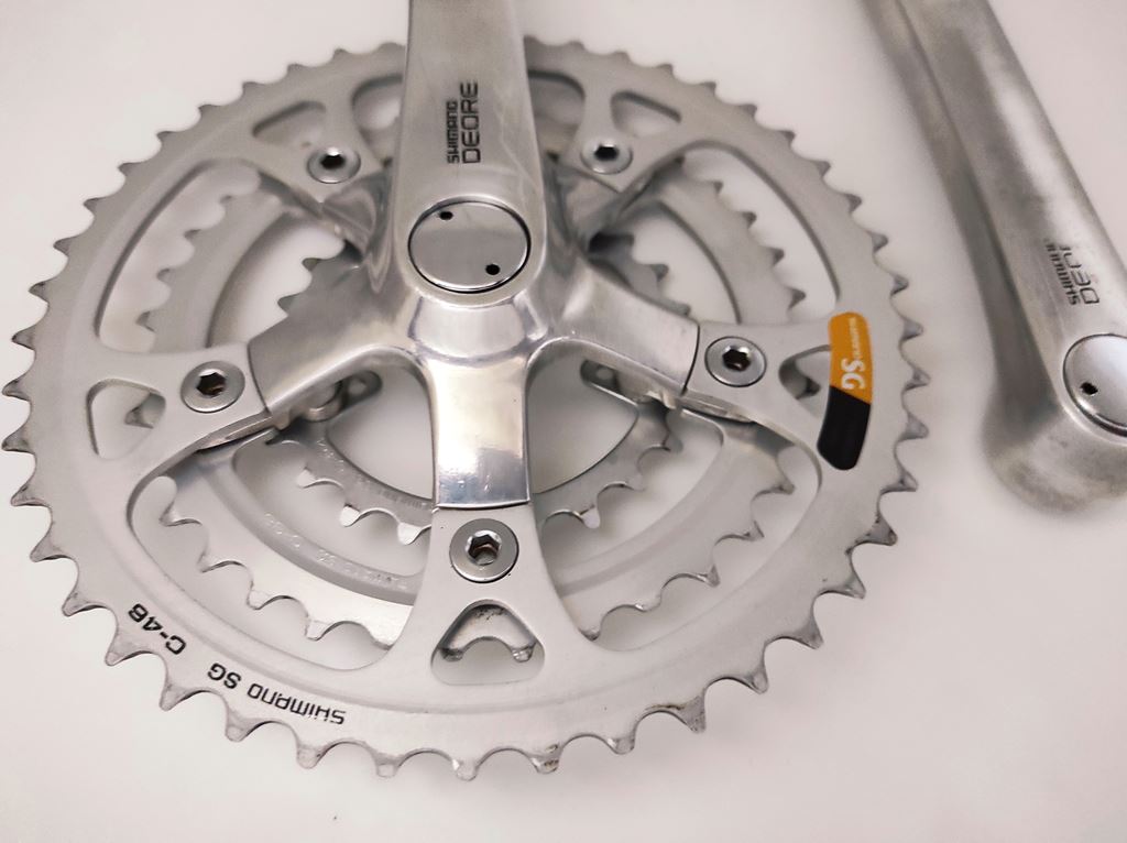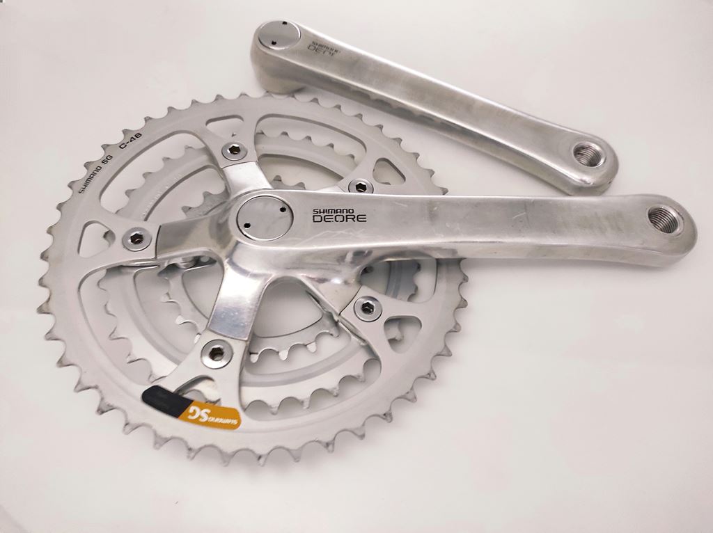 - oldschool racing MTB Crank Set Classic Mountainbike Kurbel Garnitur Vintage Pédalier Velo tout terrain SHIMANO Deore DX - FC MT60 Data Code : PH > 1991 Bereich : retro MTB cross country enduro crossbike fully downhill freerider xc cc marathon vtt atb all terrain - Aluminium Kurbelarme - Aluminium Kettenblätter - Länge Kurbelarm : 175mm - Abstufung : 24/36/46 Zähne - 5-Arm Aufnahme / Spider - Lochkreis : BCD 110 / 74 - Innenlager Aufnahme : 4-Kant - für 3x 7/8 Antriebe Lieferumfang : gemäß Bilder Kurbelsatz komplett inkl. Kurbelschrauben & Staubkappen ZUSTAND : occasion - sehr gut - wenige Gebrauchsspuren - Technisch einwandfrei - gründlich gereinigt & poliert Versandkosten CHF 8.50 TWINT Zahlung möglich Beachten Sie weitere Angebote von Rennvelo Style Bikes Mountainbike , Citybike , Fahrrad Zubehör & Ersatzteile pedalier guarnitura manovella crankset KTM kurbelgarnitur kurbelset kettenrad felt GT kettenkranz mondia scott cannondale BMC specialized xt trek canyon centurion wheeler stevens giant kona koba bergamont cube Merida TDs cycletech vtt rotwild Villiger rocky mountain arrow hardtail XTR heavy tools