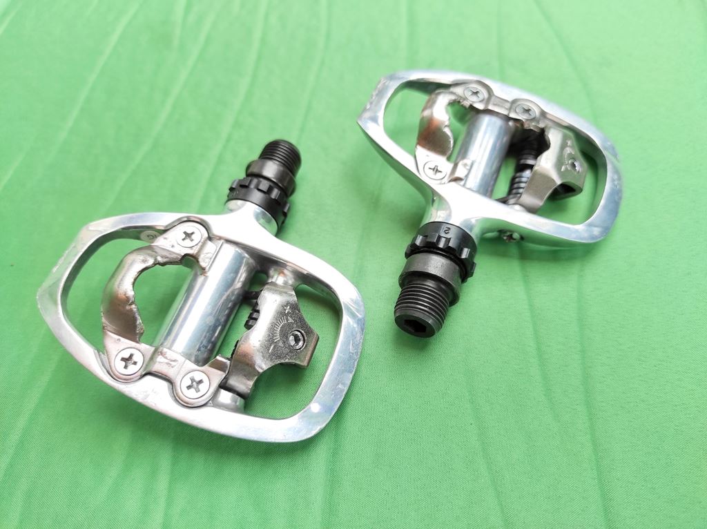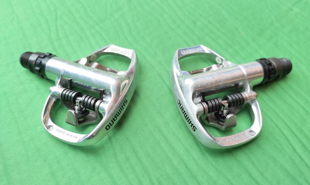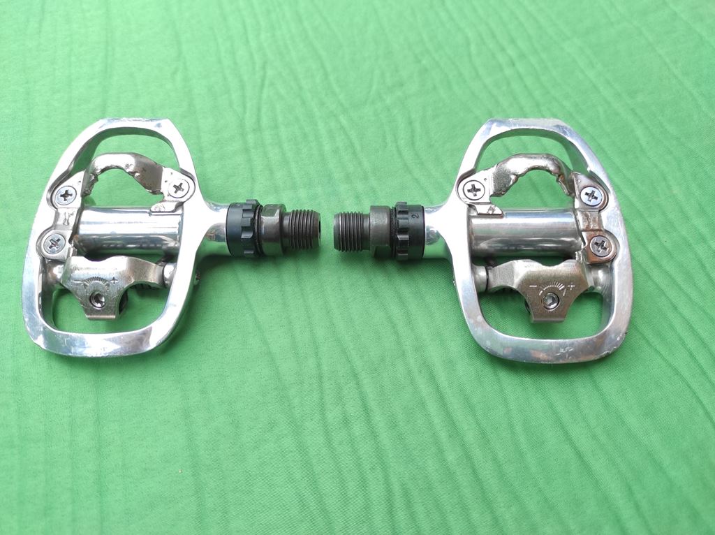 - Shimano PD-A520 - Click Pedal Rennvelo Klickpedal Das PD-A520 Pedal von Shimano - SPD kompatibel für Rennrad endurance gravel touring mtb crossbike trekking urban allmountain cross country e-bike etc. Pedalsystem : SPD Klickpedal Versenktes SPD-System zum effizienteren Pedalieren ermöglicht mit einem entsprechenden Schuh bequemes Laufen Material Achse : CrMo Pedalkörper : Aluminium Bindung : einseitig Lagerung : Kompaktlager, gedichtet Auslösehärteeinstellung : Ja Lieferumfang : 1 Paar / gemäß Bilder (ohne Cleats) ZUSTAND : occasion - sehr gut Technisch einwandfrei - geprüft Geeinigt & geschmiert Versandkosten CHF 8.00 Beachten Sie weitere Angebote von Rennrad Style Bikes Mountainbike Citybike Fahrrad Zubehör & Ersatzteile pédales vtt velo course de ville mks trek scott merida cannondale wheeler specialized giant focus gitane centurion lapierre price racer stevens bergamont bontrager tds tour de suisse cresta haibike rose allegro cilo bmc dura ace rival sram tiagra clickpedale Ultegra plattformpedale ritchey wellgo time vp 105 canyon Felt cube Orbea univega Kuota Koba