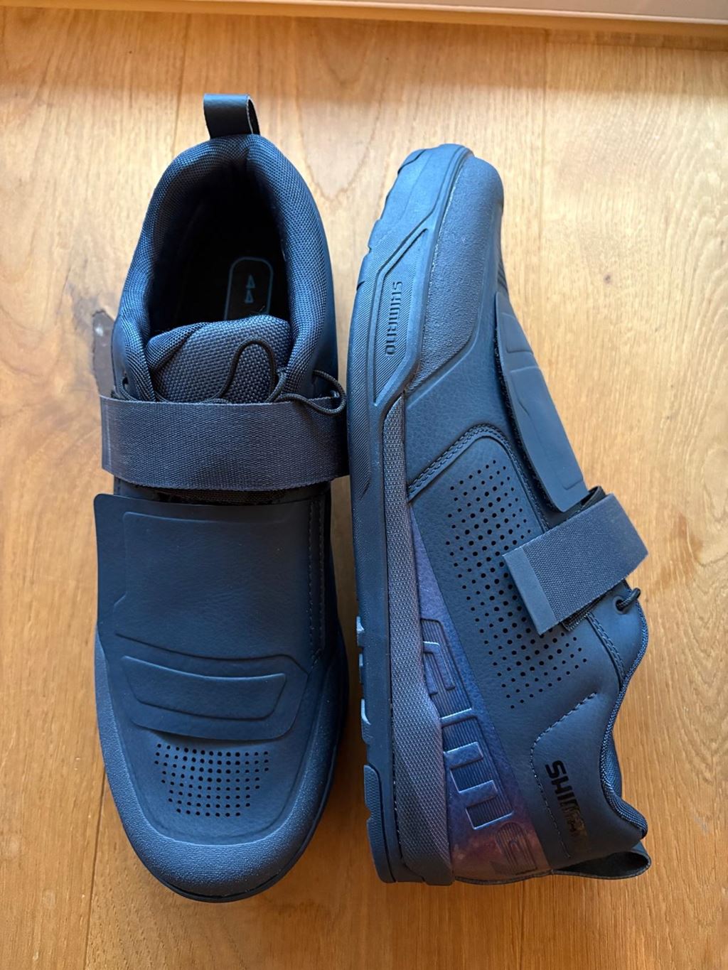 - Grösse 44 EU / 9.7 US -> FABRIKNEU !!! Die Shimano AM903 Herren MTB Schuhe sorgen mit dem bewährten SPD-System für souveräne Kontrolle im Downhill und Enduro-Einsatz. Der breite Riemen am Fußrücken gibt sicheren Halt und unterstützt aggressives Pedalieren in jedem Gelände. Die schützende Lasche zur Schnürungsabdeckung bietet zusätzlichen Schutz vor Schmutz und Steinchen. Das Speed-Lacing-System ermöglicht eine schnelle und sichere Anpassung und ist unter einer großen Lasche mit Klettverschluss verborgen. - Robuste Zehenkappe für zusätzlichen Zehenschutz - Plattensystem: SPD - Steifigkeitswert: 5 - Verschluss: 1 Schnalle, Schnellschnürung - Obermaterial: Kunstleder - Material Außensohle: Gummi+EVA - Material Zwischensohle: Glasfaserverstärktes Nylon - Standardeinlegesohle: Innensole VOLUME-TOUR - Gewicht: 424g
