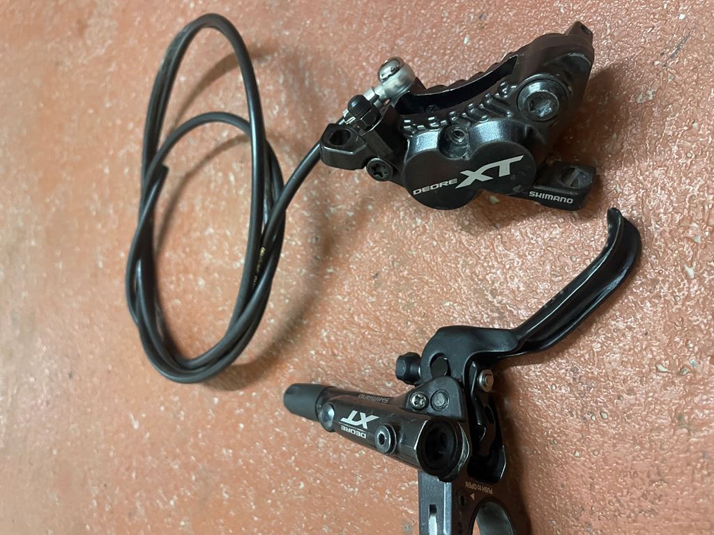 - Verkaufe sehr gutes Bremsenset für MTB Enduro oder Trail Einsatz. Shimano XT 4 Kolbenbremsen. Leitungslänge: - vorne 79 cm - hinten 169 cm Die hintere Leitung musste geschnitten werden für den Ausbau vom Bike. Darum muss die Bremse beim Einbau mit frischem Öl befüllt und entlüftet werden. Olive und Stecknippel lege ich bei.