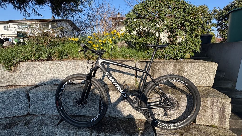 - Das Bike ist noch in Top-Zustand, weist normale Gebrauchsspuren auf. Es kann gerne vor Ort besichtigt und probegefahren werden. Inkl. SPD Pedale und Getränkehalter und allem Zubehör. Rahmengrösse XL passt für Körpergrösse 185-193 cm. Gewicht XL = 9 kg! FRAME S-Works FACT 12m, full carbon frame w/ S-Works layup, XC Geometry, internal split-housing cable routing, PF30 BB, 12x148mm rear end, triangulated post-mount 160mm brake FRONT HUB Roval Control SL, sealed cartridge bearings, 15mm thru-axle, 110mm spacing, 24h REAR HUB Roval Control SL, DT Swiss Star Ratchet, 54t engagement, SRAM XD driver body, 12mm thru-axle, 148mm spacing, 28h SPOKES DT Swiss Competition Race EAR DERAILLEUR SRAM XX1 Eagle™, 12-speed SHIFT LEVERS SRAM XX1 Eagle, trigger, 12-speed CASSETTE SRAM X01 Eagle, 12-speed, 10-50t CHAIN SRAM X01 Eagle, 12-speed w/ PowerLock CRANKSET SRAM XX1 Eagle, 175/mm crankarm, 30mm spindle REAR BRAKE SRAM Level Ultimate, hydraulic disc, carbon lever, titanium hardware, organic pads, 160mm rotor FRONT BRAKE SRAM Level Ultimate, hydraulic disc, carbon lever, titanium hardware, organic pads, 160/180mm rotor