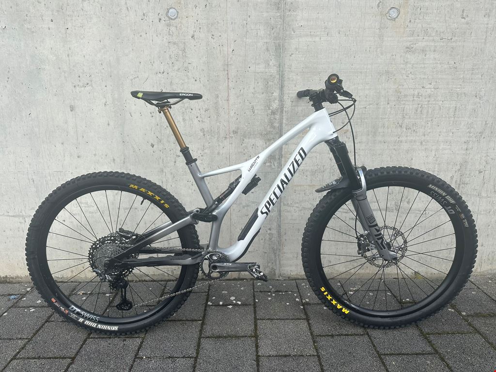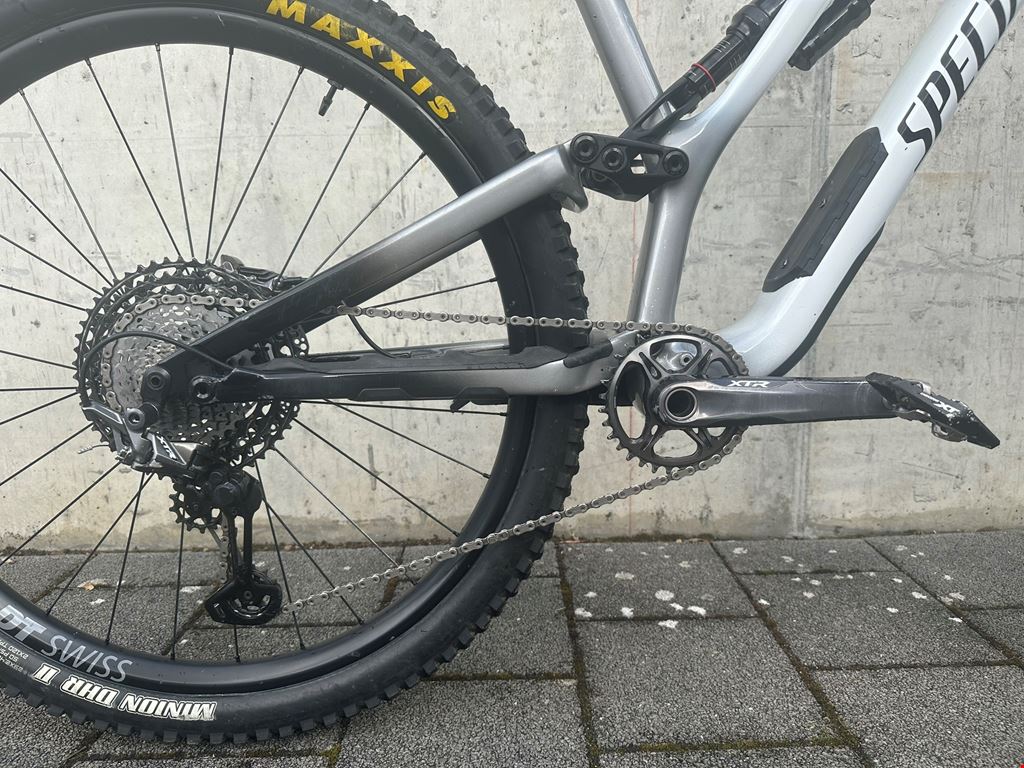 - Ich verkaufe mein Specialized Stumpjumper in Grösse L mit Sonderlackierung in gutem Zustand. Es ist das optimale Bike, um ruppige Trails mit Uphillpassagen zu verbinden; es kommt selten an seine Grenzen. Beim Rahmen handelt es sich gem. Vorbesitzer um die S-Works Ausführung, der neu lackiert wurde, wodurch keine Herstellerangaben mehr auf dem Rahmen sichtbar sind. Das Bike wurde leider die letzten 4 Jahre kaum gefahren und wird deswegen nun verkauft. Es weist einige Gebrauchsspuren und Lackabplatzer (siehe Fotos) auf, ist technisch jedoch in einwandfreiem Zustand. Das Bike kann gerne besichtigt und probegefahren werden. Preis ist verhandelbar, mach mir einfach ein Angebot! Details: - Grösse: L/S4 (gem. Specialized für 173-188cm) - Federgabel: RockShox Pike Ultimate - Dämpfer: RockShox Super Deluxe Ultimate - Laufräder: DT Swiss EXC 1200 (30mm) - Schaltung: Shimano XTR M9100 1x12 (32T Kettenblatt) - Bremse: Shimano XTR M9100 Trail - Lenker: Renthal Flatbar Carbon35 - Sattelstütze: Fox Transfer Factory - Pedale: Shimano XT Melde dich gerne bei Fragen oder für eine Besichtigung!