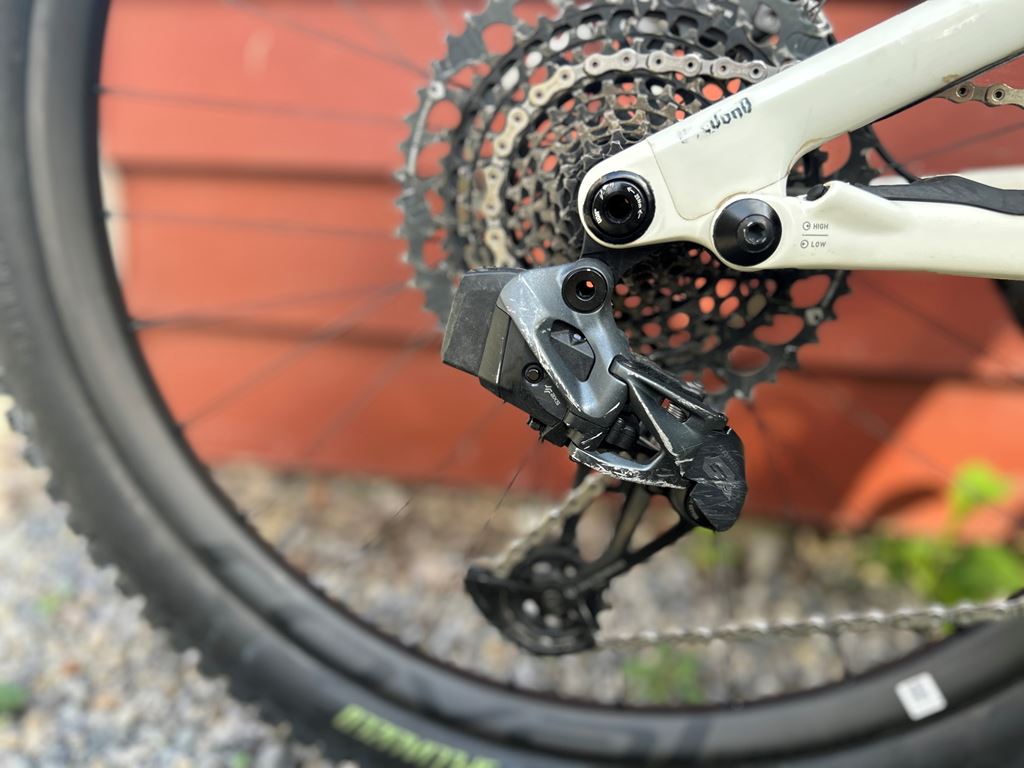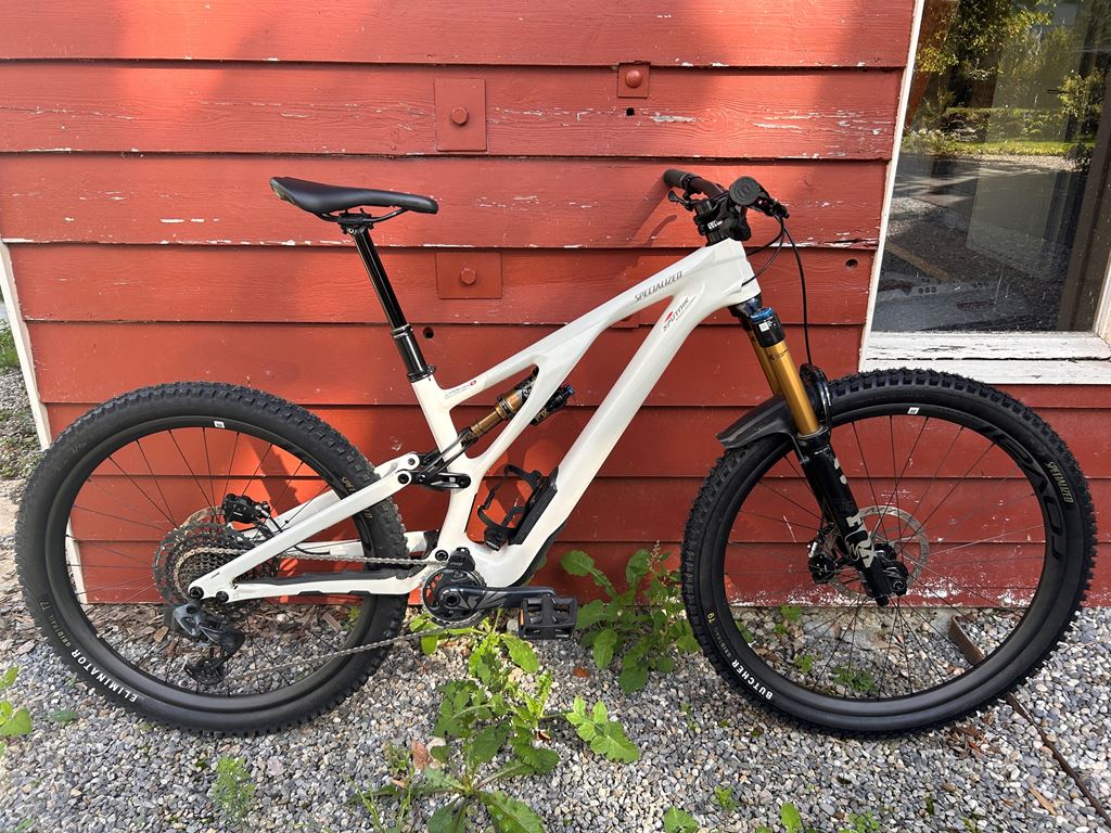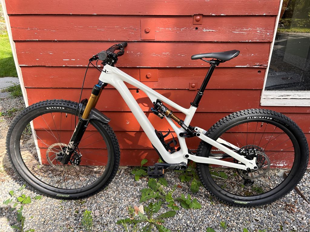 - Ich verkaufe mein Bike, da ich bereits das neue Stumpjumper 15 fahre. Das Bike wurde mit einem 29er Radsatz gefahren, daher ist der Radsatz inkl. Reifen fabrikneu. Der Dämpfer ist frisch ab Service (Garantie), An der Gabel wurde in den 1.5 Jahren 3x einen Service gemacht. Ich freue mich auf deine Nachricht! Rahmen FACT 11m carbon chassis and rear-end, asymmetrical design, 29/27.5" Trail Geometry, SWAT™ Door integration, head tube angle adjustment, horst pivot BB adjustment, threaded BB, fully enclosed internal cable routing, 12x148mm dropouts, sealed cartridge bearing pivots, replaceable derailleur hanger, 150mm of travel Dämpfer FOX FLOAT X Factory, Rx Trail Tune, EVOL Air sleeve, 2-position lever w/ LSC adjustment, S2-S6:210x55mm Gabel FOX FLOAT 36 Factory, GRIP2 damper, 15x110mm, 44mm offset, S1: 150mm of travel, S2-S6: 160mm of travel Vorderradbremse (fabrikneu) SRAM Maven Silver, 4-piston caliper, hydraulic disc, 200mm HS2 Rotor Hinterradbremse (fabrikneu) SRAM Maven Silver, 4-piston caliper, hydraulic disc, S3-S6: 200mm HS2 Rotor Schaltwerk SRAM GX Eagle AXS Kassette SRAM XG-1295 Eagle, 10-52t Kette SRAM X01 Eagle, 12-speed Kurbelgarnitur SRAM X1 Carbon, DUB, S2-S5: 170mm Kettenblätter 30T, Original 32T kann mitgeliefert werden Felgen (alles fabrikneu) Roval Traverse Carbon 29F/27.5R, hookless carbon, 30mm inner width, hand-built, 2Bliss Ready Vorderradnabe DT Swiss 350, sealed cartridge bearings, 15x110mm spacing, 28h Hinterradnabe DT Swiss 350, Star Ratchet, 36t engagement, SRAM XD driver body, 12mm thru-axle, 148mm spacing, 28h Speichen DT Competition Race Vorderreifen Butcher, GRID TRAIL casing, GRIPTON® T9 compound, 2Bliss Ready, 29x2.3" Hinterreifen Eliminator, GRID TRAIL casing, GRIPTON® T7 compound, 2Bliss Ready, 27.5 x 2.3" Vorbau (fabrikneu) Deity, 35.0mm Lenker Roval Traverse SL Carbon, riser bar, 6-degree upsweep, 8-degree backsweep, 30mm rise, 780mm, 35.0mm Lenkergriffe (fabrikneu) Deity Lockjaw Sattel (fabrikneu) Bridge Expert with MIMIC, Hollow Ti rails, S3-S6: 143mm Sattelstütze Bike Yoke, Revive Max, 34.9, S2-S3:150mm