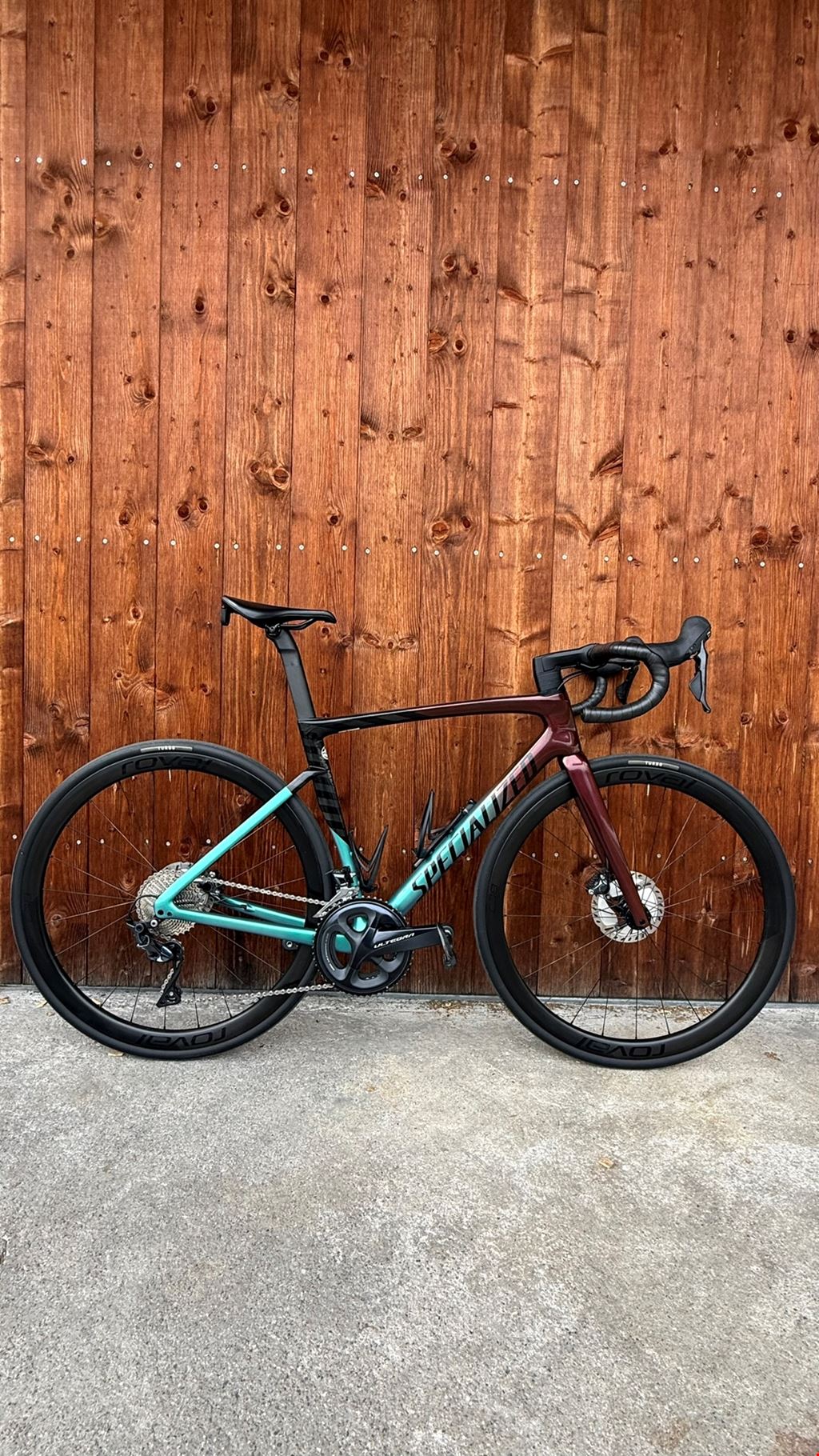 - Top Rennvelo ab Servic + Grössse 54 (ich bin 175cm) + Farbe Türkis/Rotgold Perlmutt/Schwarz + carbon Felgen + Shimanos Ultegra 11-Gang-mechanischer Schaltung + neue Pneu + neues Lenkerband + Bremsen Shimano Ultegra - ohne Pedalen, Garmin- & Licht Halterung, ohne Pumpe https://www.specialized.com/gb/en/tarmac-sl7-expert/p/188008?color=302545-188008