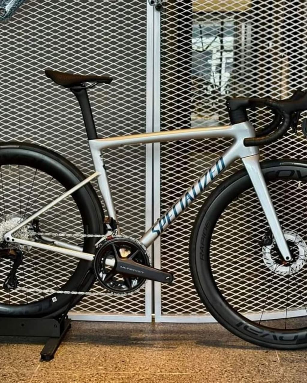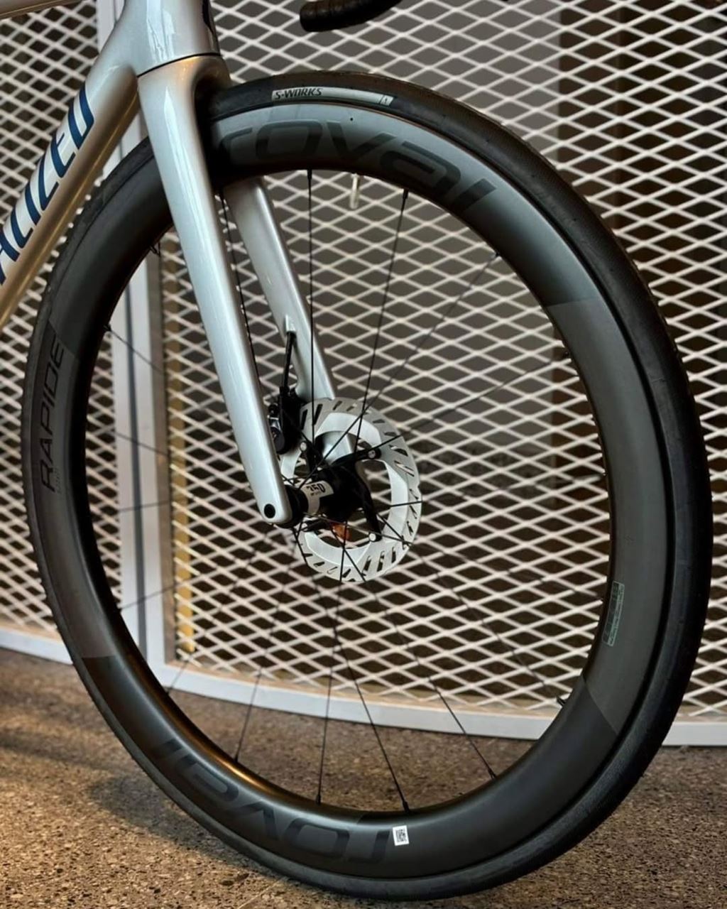 - Frame/Fork FACT 10r Carbon, 12x100mm thru-axle, flat-mount disc Handlebars Roval Rapide Cockpit, Integrated Bar/Stem Stem Roval Rapide Cockpit, Integrated Bar/Stem Tape Supacaz Super Sticky Kush Saddle Power Pro with Mirror Seatpost S-Works Tarmac SL8 Carbon seat post, FACT Carbon, 15mm offset Seat Binder Tarmac integrated wedge Front Brake Shimano Ultegra Di2 R8170, hydraulic disc Rear Brake Shimano Ultegra Di2 R8170, hydraulic disc Chain Shimano Ultegra, 12-speed Crankset Shimano Ultegra R8100 with 4iiii power meter Chainrings 52/36T Bottom Bracket Shimano Threaded BSA Front Derailleur Shimano Ultegra Di2 R8150, braze-on Rear Derailleur Shimano Ultegra Di2 R8150, 12-speed Shift Levers Shimano Ultegra Di2 R8170, hydraulic disc Cassette Shimano Ultegra, 12-speed, 11-30t Front Wheel Roval Rapide CL II, 21mm internal width carbon rim, tubeless ready, Win Tunnel Engineered, DT for Roval 350 hub, DT Swiss Revolution spokes, 51mm depth Rear Wheel Roval Rapide CL II, 21mm internal width carbon rim, tubeless ready, Win Tunnel Engineered, DT for Roval 350 hub, DT Swiss Revolution spokes, 60mm depth Front Tyre S-Works Turbo, 2BR, 700x26mm Rear Tyre S-Works Turbo, 2BR, 700x26mm Inner Tubes Turbo Ultralight, 60mm Front, 80mm Rear, Presta valve