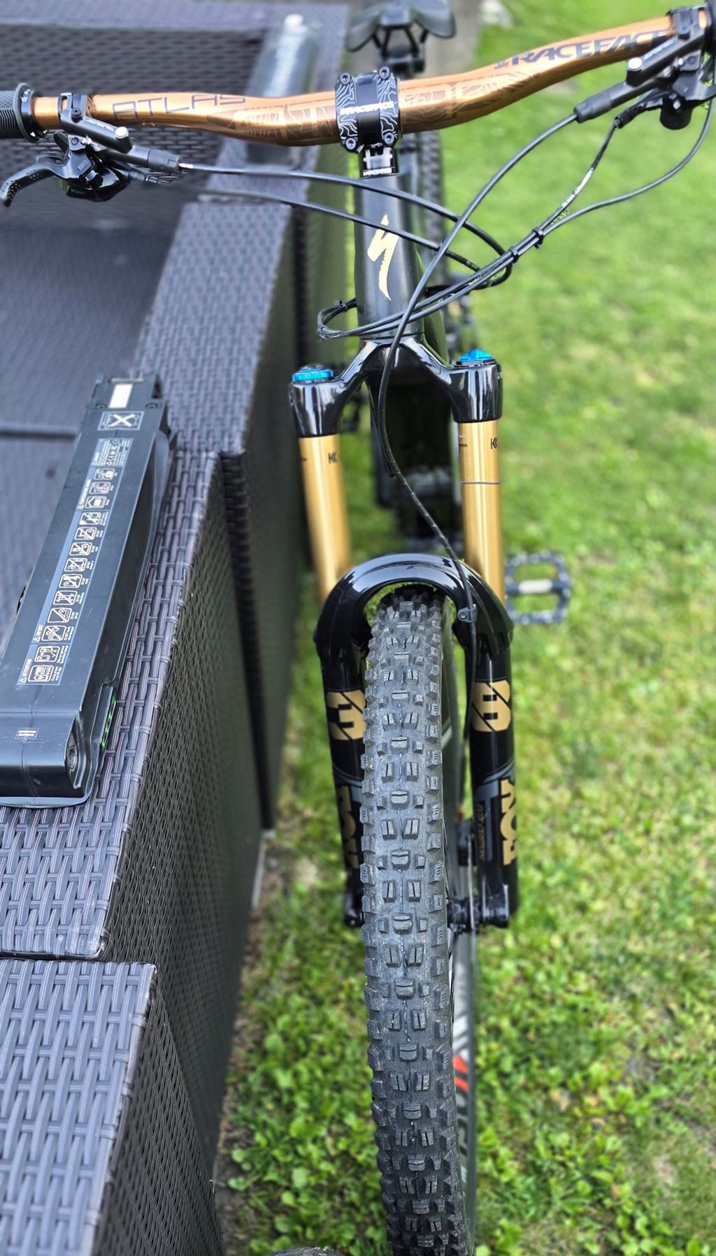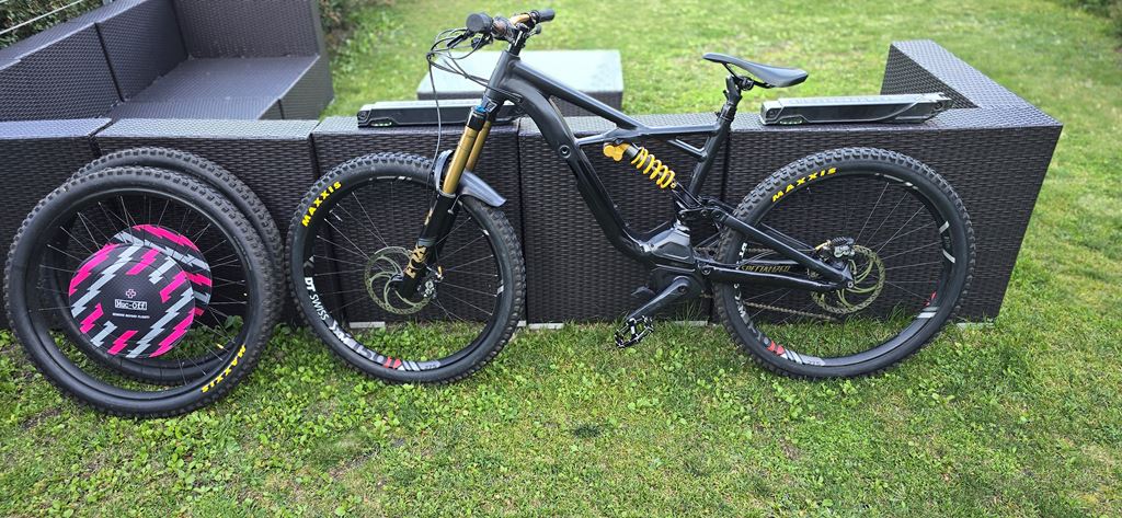 - Verkaufe dieses schöne und spezielle E-Bike von Specialized (Schwarz, Gold Kombi) inklusiv zweitem Laufradsatz von DT Swiss (lautester Leerlauf) und zweitem Akku (einer wurde letztes Jahr durch Specialized ersetzt und ist wie neu). Im Hinterrad von DT Swiss hat es bereits Cushcore. Alle Räder sind tubeless. Öhlins Dämpfer. Letzter Service war Ende letzten Jahres, seit dem nicht mehr gefahren da ich komplett auf DH umgestiegen bin. Alle Orignial Teile, wie Laufradsatz, Gabel (RockShox Lyrik RCT3, 27.5", Solo Air, Boost™ 15x110mm, 35mm stanchions, 180mm of travel) sind vorhanden und werden mitgegeben. Ladegerät für Akkus vorhanden.