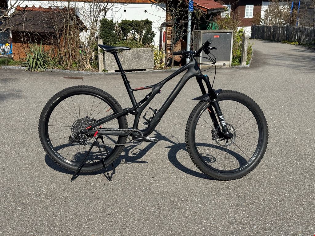 - Ich verkaufe mein Specialized Stumpjumper, weil er mir etwas zu klein ist (Ich bin 187). Das Specialized Stumpjumper ist ein echtes Allround-Trailbike, das durch seine beeindruckende Ausgewogenheit überzeugt. Dank seiner effizienten Geometrie und dem gut abgestimmten Fahrwerk, lässt es sich erstaunlich angenehm bergauf fahren. Gleichzeitig entfaltet es bergab sein volles Potenzial: technisch präzise, verspielt und mit einer ordentlichen Portion Race-DNA. Der Stumpjumper befindet sich in einem gepflegten, gebrauchten Zustand und weist die üblichen, leichten Gebrauchsspuren wie feine Kratzer auf. Technisch funktioniert das Bike einwandfrei. Zwei Komponenten haben ein Upgrade siehe Spezifikationen. Am Vorderrad ist ein minimales Spiel vorhanden, welches die Funktion jedoch nicht beeinträchtigt. Eine Besichtigung und Probefahrt vor Ort wird empfohlen! Specialized Stumpjumper Comp 2020 Rahmen: fact 11m Carbon Gabel: Fox 34 RHYTHM Dämpfer: Fox EVOL DSP 3 Stufen Sattellift: XFusion manic (Stufenlos Nachgerüstet) Lenker: - Vorbau Alloy 45mm - Lenker Alloy 780mm Antrieb: - SRAM NX 1x 12 - Rizel 30 Zähne - DUB Tretlager geschraubt Bremsen v/h: - Shimano Deore XT 4 Kolben (Nachgerüstet) - vorne 203mm Shimano ICE Bremsscheibe - hinten 180mm Shimano ICE Bremsscheibe Laufräder: roval Traverse Alloy 29“ Tubeless v/h Nabe vorne roval 110 Nabe hinten roval 148 Pneu vorne, Butcher (Zustand sehr gut) Pneu hinten, Elminator (Zustand gut) Das Bike wird ohne Pedalen verkauft! Detail Fotos können auf Anfrage bereitgestellt werden. Verkauf ab Platz von Privat ohne Garantie und Gewährleistung.