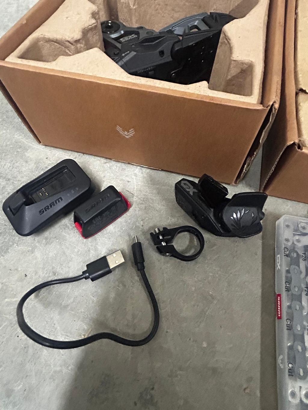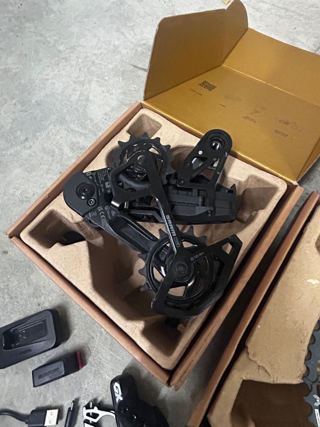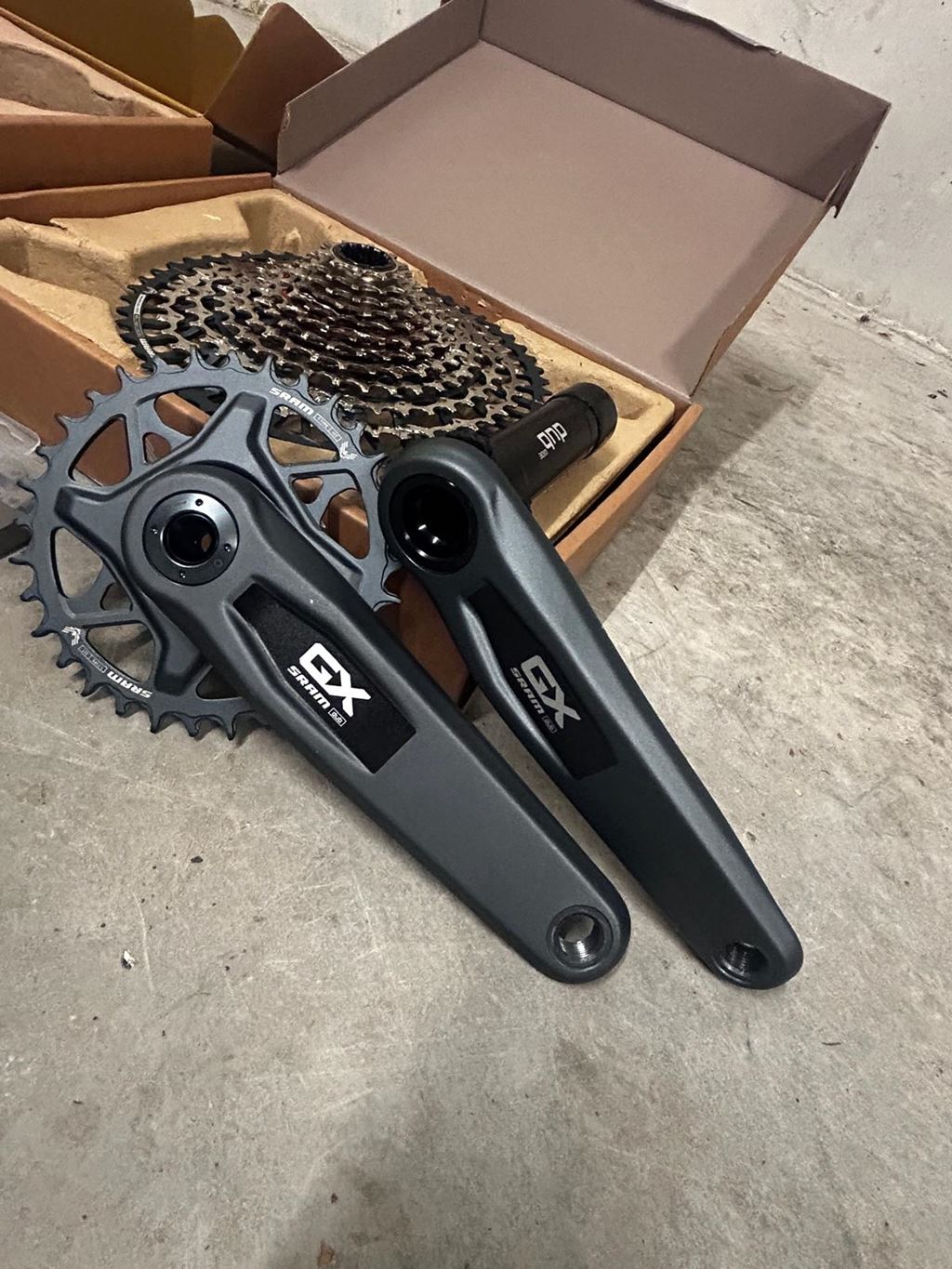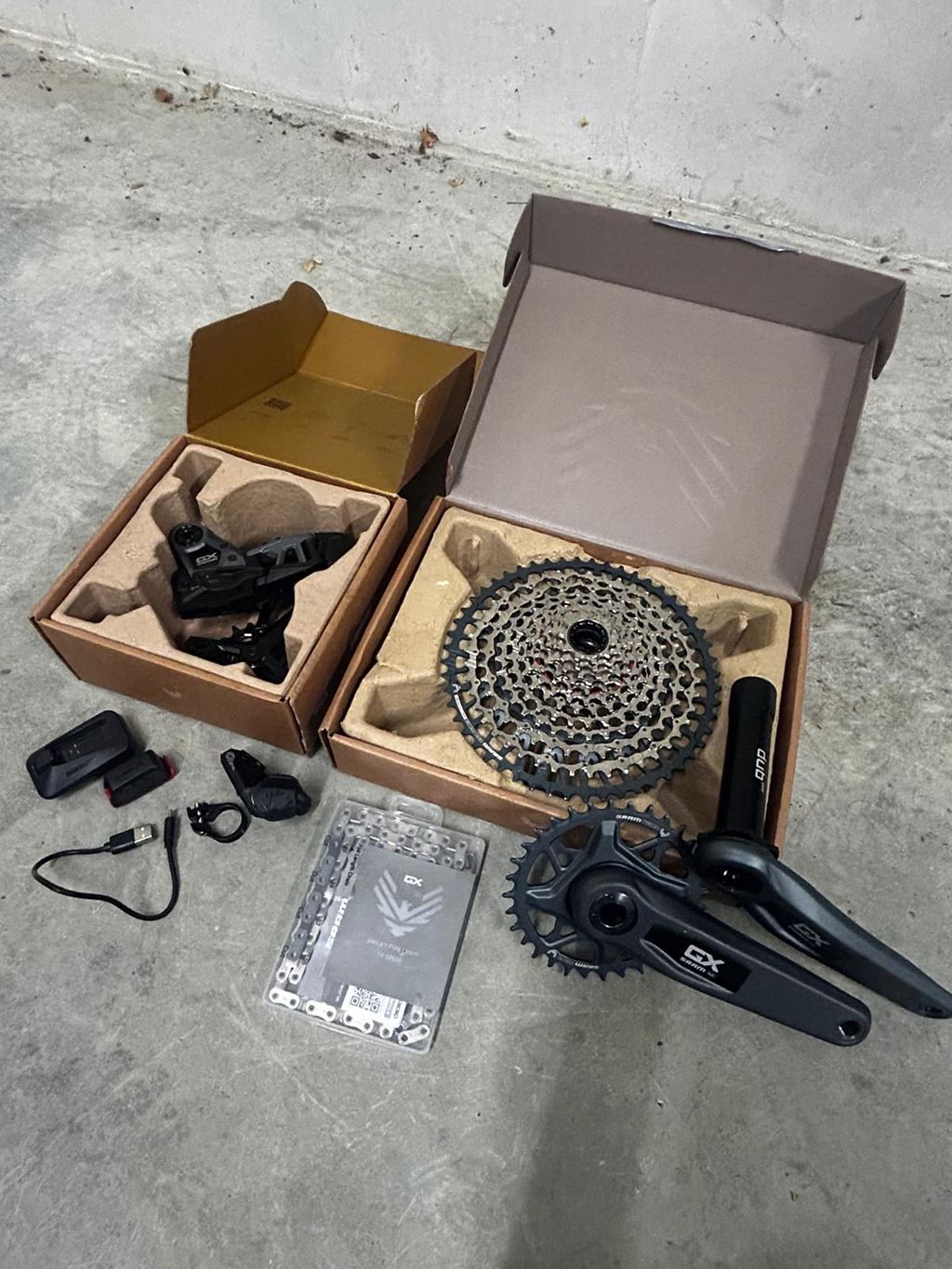 - Neu nie montierte Sram GX T-Transmition Groupset. Inbegriffen sind: Sram GX Transimiton Schalter mit Hebel Batterie und Ladegerät Neue Transmition Kette Neue Transmition Kassette Neue Transmition Kurbel