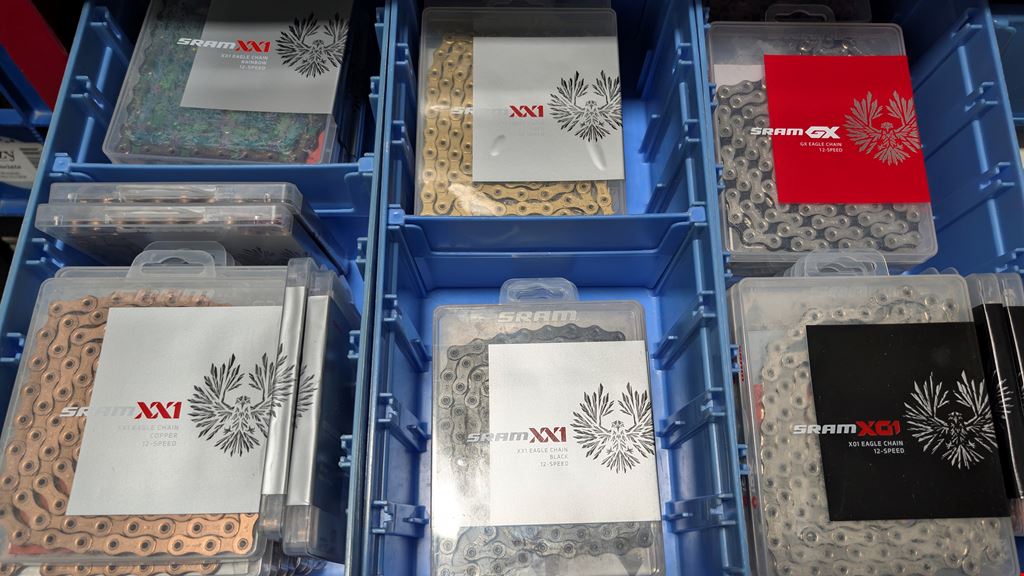 - SRAM XX1 Eagle 12-fach Kette Kupfer Cooper Herstellernummern: 00.2518.043.010 Zustand: Neu Originalverpackt Lieferumfang: 1 x Kette SRAM PC XX1 Eagle 1 x Kettenschloss SRAM PowerLock