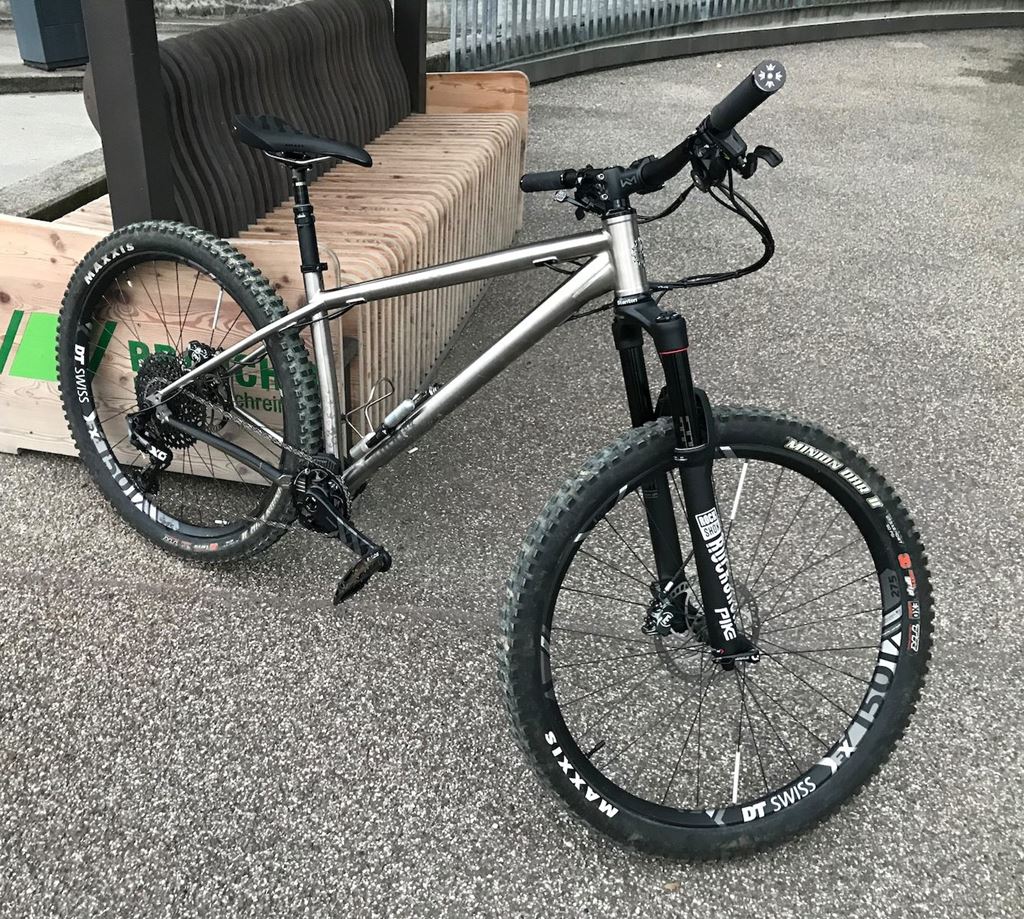 - Hoi zäme, I'm selling my beloved Stanton Titanium hardtail since my family is growing and I don’t find the time riding it. It's an excellent bike for doing it all - from doing long rides to steep chutes and technical terrain always fun! Frame is a Long 16.5’' and fits me well at 1m78 - though I feel I'm at the upper limit for the frame size (so would not recommend for taller riders than me). Comes with a 160mm RS Pike retrofitted with an RC2 damper & DebonAir upgrade, transforming it to a Lyrik ultimate - done by suspensioncenter.ch 30mm inner width Bontrager Line Pro 30 Carbon wheels. Drive train is SRAM AXS 12-speed with DUB BB (threaded) and XX1 carbon cranks. Dropper is AXS as well. Breaks are Magura MT7 pistons with XT levers.