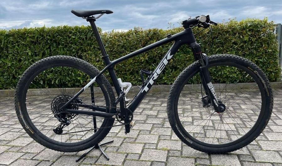 - Verkaufe schönes und gut erhaltenes Carbon-Hardtail. Siehe Link. Seit Kauf wenig gefahren, keine relevanten Schäden am Carbon, natürlich Gebrauchs-Spuren, Lackschäden etc. Sattel, Stütze und Vorbau wird auf Original zurückgebaut. Nur Abholung. Privatverkauf, keine Garantie/Gewährleistung. https://www.ricardo.ch/de/a/trek-procalibler-97-hardtail-1175649878/ Gewicht ca. 11.5 kg.