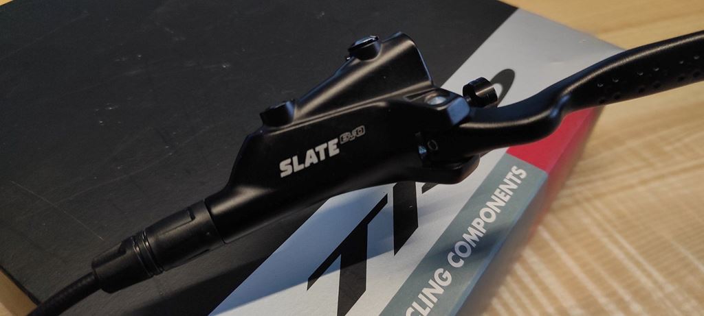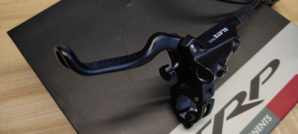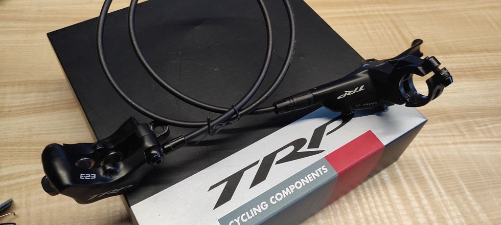 - TRP SLATE EVO HD-M807 Scheibenbremsenset inkl. Scheiben und Zubehör Einsatzbereich: MTB, E-Bike Bremsentyp: Disc-Brake Hydraulisch / 5 mm starke Hydraulikleitung Hebellänge: ergonomischer 2-Finger Bremshebel Klemmschelle: offen Befestigungssystem: I-Spec II kompatibel Bremssattel: 4-Kolben / Top-Loading Rotoren: 2,3 mm Aufnahme Bremssattel: Postmount Leitungslänge: ca. 1400/ 950 mm Griffweiteneinstellung: Integriert (ohne Werkzeug) Leitungsanschluss: Banjo Bolt-Anschluss Bremsflüssigkeit: Mineralöl Lieferumfang: TRP Bremsanlage Slate EVO HD-M8107 LI - Vorderrad (ca. 95cm) TRP Bremsanlage Slate EVO HD-M8107 RE - Hinterrad (ca. 140cm) TRP Scheibe VR 203mm 6-Loch inkl. Schrauben (R203S01E --> 2.3mm) TRP Scheibe HR 180mm 6-Loch inkl. Schrauben (R180S01E --> 2.3mm) Belagsatz (VR/HR): 1x TRP / 1 x Galfer Montagematerial (siehe Bilder) Von einem Neubike, nach einmaliger Fahrt entnommen.