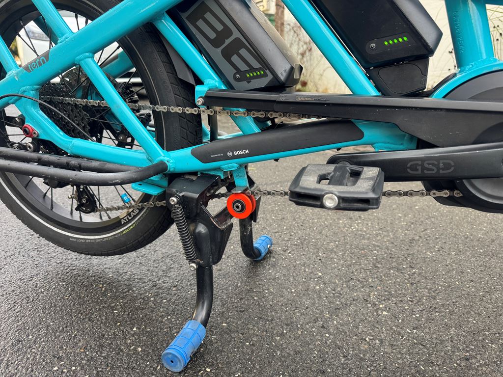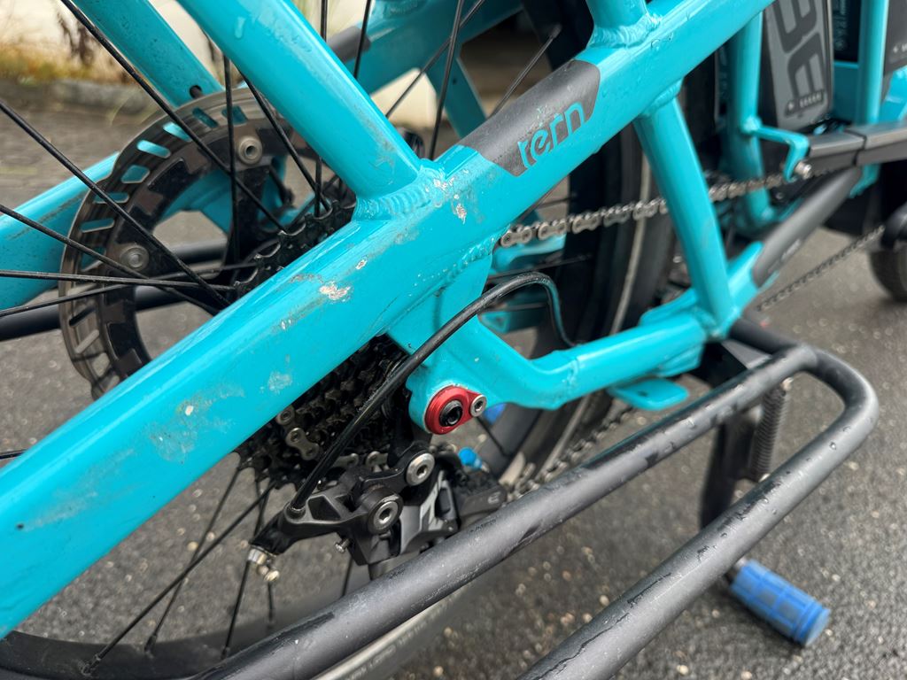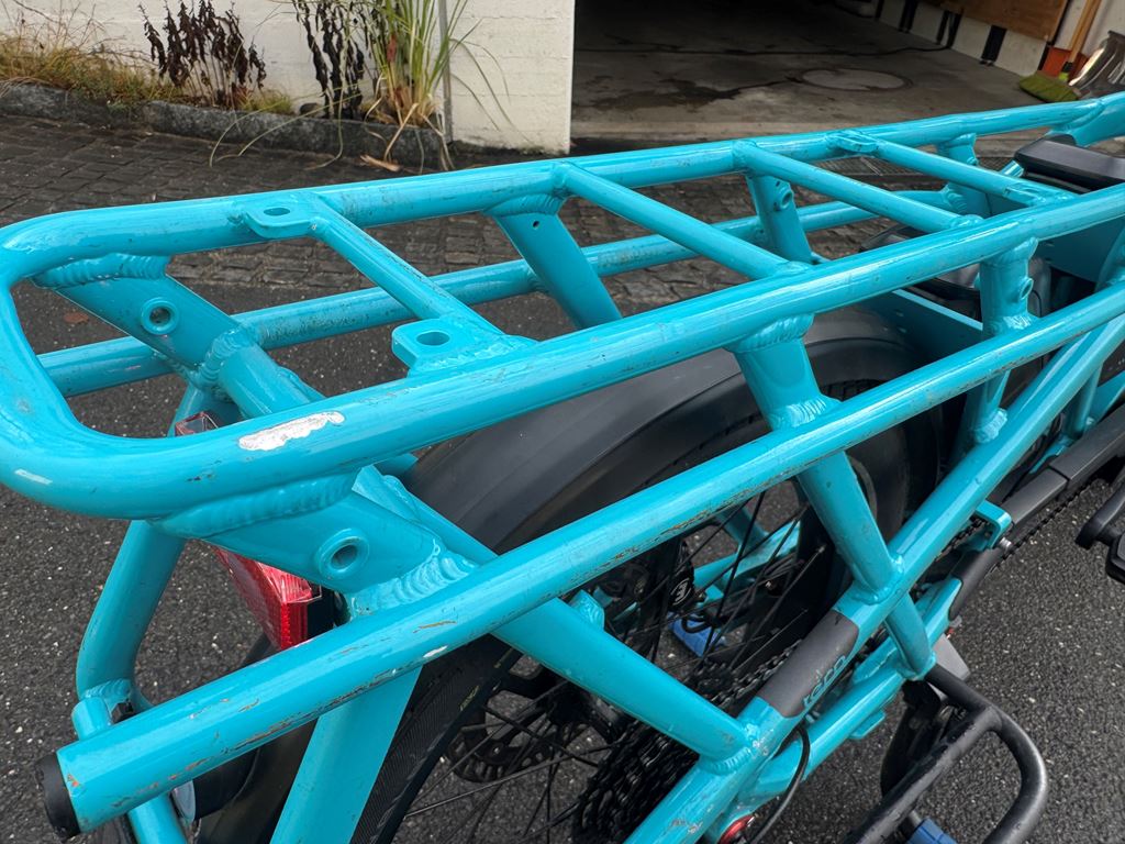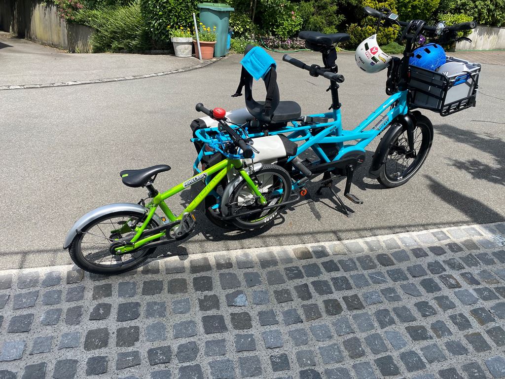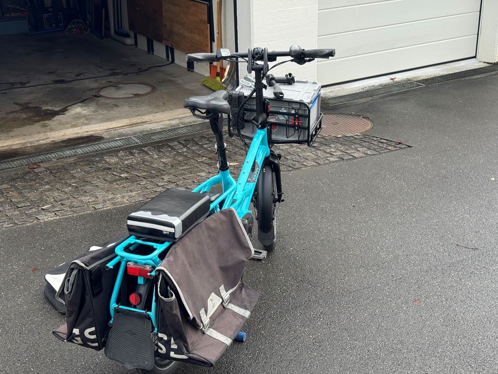 Ich verkaufe mein trues Tern GSD, erste Generation, mit viel Zubehör, da die Kinder nun gross genug sind, um selbst zu fahren. Gekauft wurde es im Juli 2018 in Deutschland, es ist also 7.5 Jahre alt und wurde ca. 8500km gefahren. Der originale Motor hatte Ende 2025 einen Schaden und wurde durch einen nagelneuen, originalen Bosch Motor ersetzt, der auch noch Garantie hat (bis April 2026). Es sind mehr als 1200.- (Neupreise) an Zusatzausstattung vorhanden plus der neue Motor. Ausstattungs-Highlights: - Shimano Zee Schaltwerk (unverwüstlich, sehr wartungsarm) - grosse MDR-P Scheibenbremsen - Atlas Ständer (wie bei den aktuellen GSD, viel stabiler als der originale) - Feder-Sattelstütze - nahezu neue Reifen Das Rad läuft wie am ersten Tag. Es stand immer im Keller oder Garage, effektiv hat es fast nie Regen gesehen und ich bin auch bei Regen kaum gefahren. Daher kein Rost oder ausgewaschene Lager. Ich habe beide Kinder vom Kindergarten bis in die Primarschule damit transportiert - zuerst mit 2 Yepp Maxi Sitzen, dann mit einem Yepp Junior, später nur noch mit dem Tern Seat Pad. Das Bike hat bei uns mindestens den Zweitwagen, oft das Auto komplett ersetzt und Einkäufe oder auch mal Material vom Baumarkt transportiert. Einige Kratzer und Lackschäden gibt es natürlich, vor allem im Gepäckbereich. Keine Beulen, Dellen oder Risse im Rahmen, es fährt wie am ersten Tag oder besser durch die Upgrades an Schaltung und Bremsen. Das Bike wurde stets gewartet (Bremsen vor 6 Monaten entlüftet und neue Beläge), Reifen ca. 1-jährig, Kette und Kassette ca. 3-jährig. Pneu sind ca. 200km gefahren. Derzeit besteht kein Bedarf für einen Service, als nächstes wäre maximal die Kette oder die Kassette fällig, aber diese halten geschätzt noch 1-2 Jahre. Da es keine Federgabel hat, muss man dort auch keine Wartung aller 1-2 Jahre machen - das ist ein grosser Vorteil, eine Wartung kostet ca. 200-300 CHF. Realistische Reichweite mit einem Akku im TURBO-Modus schätze ich auf 30-40km auf gerader Strecke, hier in den Bergen eher 25km. Mit zwei Akkus entsprechend doppelt so lange und im Sport- oder Eco-Modus natürlich viel weiter. Am Berg hilft aber nur Turbo. Kein Spiel im Headset, den Pedalen oder Radlagern, Sattelstütze war immer gut geschmiert und federt super. Räder laufen rund und eiern nicht. Bremsen ziehen gut, quietschen nicht. Die Sattelstütze ist frisch geschmiert und federt gut. Der Front-Gepäckträger hat ein paar Schrammen auf der Auflagefläche, da dort schon immer die Box drauf steht (kann man nur empfehlen). Die Box gebe ich . Ausstattung (Preise in Klammern waren meine Kosten - das ist alles im Preis enthalten!) - Neuer Bosch Performance Line Motor (Austausch nach Motorschaden), 23 km (500.-) - Sidekick Bars (70.-) - Sidekick Foot Pegs (25.-) - Sidekick Lower Decks (65.-) - Sidekick Seat Pad (50.-) - Transporteur Rack (175.-) - 2 Akkus (4000km und 3000km) (200.-) - Abus Rahmenschloss (30.-) - Abus Gelenkschloss (80.-) - Atlas Zweibeinständer (50.-) - Suntour NCX Feder-Sattelstütze (120.-) - 1 neue Transportbox vorn, halbe Höhe mit Deckel (20,-) - 1 Transportbox vorn, ca 7 jährig - 2 original Pannier Bags - Schmutzfänger - keine Federgabel (daher auch kein Service nötig!) - Magura MT-5 Bremsen mit MDR-P Scheiben (die nicht klappern) 220mm vorn, 203mm hinten (100.-) - Shimano Zee 10-fach Schaltwerk: unverwüstlich, praktisch keine Einstellung in den letzten 5 Jahren (50.-) - fast neue Schwalbe Reifen, ca. 200km gefahren, "E Pick-Up 50 Cargo-Ready, Addix 8, 125kg max load, 60-406 (20x2.35), Reflektor-Streifen (50.-) - original-Beleuchtung, Front-Rückstrahler, Hupe - Rahmenfolie ab Werk ist noch drauf - alle Schlüssel vorhanden - alle Anleitungen vorhanden Die weissen Ortlieb-Taschen können ggf. extra gekauft werden. Eine Ricardo Auktion läuft ebenfalls - schaut da auch mal rein! Das Rad kann gern im Meggen angeschaut und probegefahren werden.